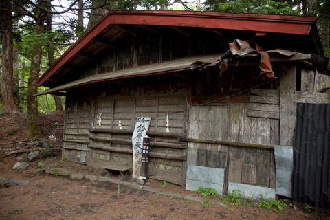 カラマツの大木に囲まれた小屋、戦国時代までは富士山信仰は大日如来を中心とする仏教信仰が主流でした。明治になるまで、この神社は神社でありながら仏様である大日如来を祀っていたそうです。