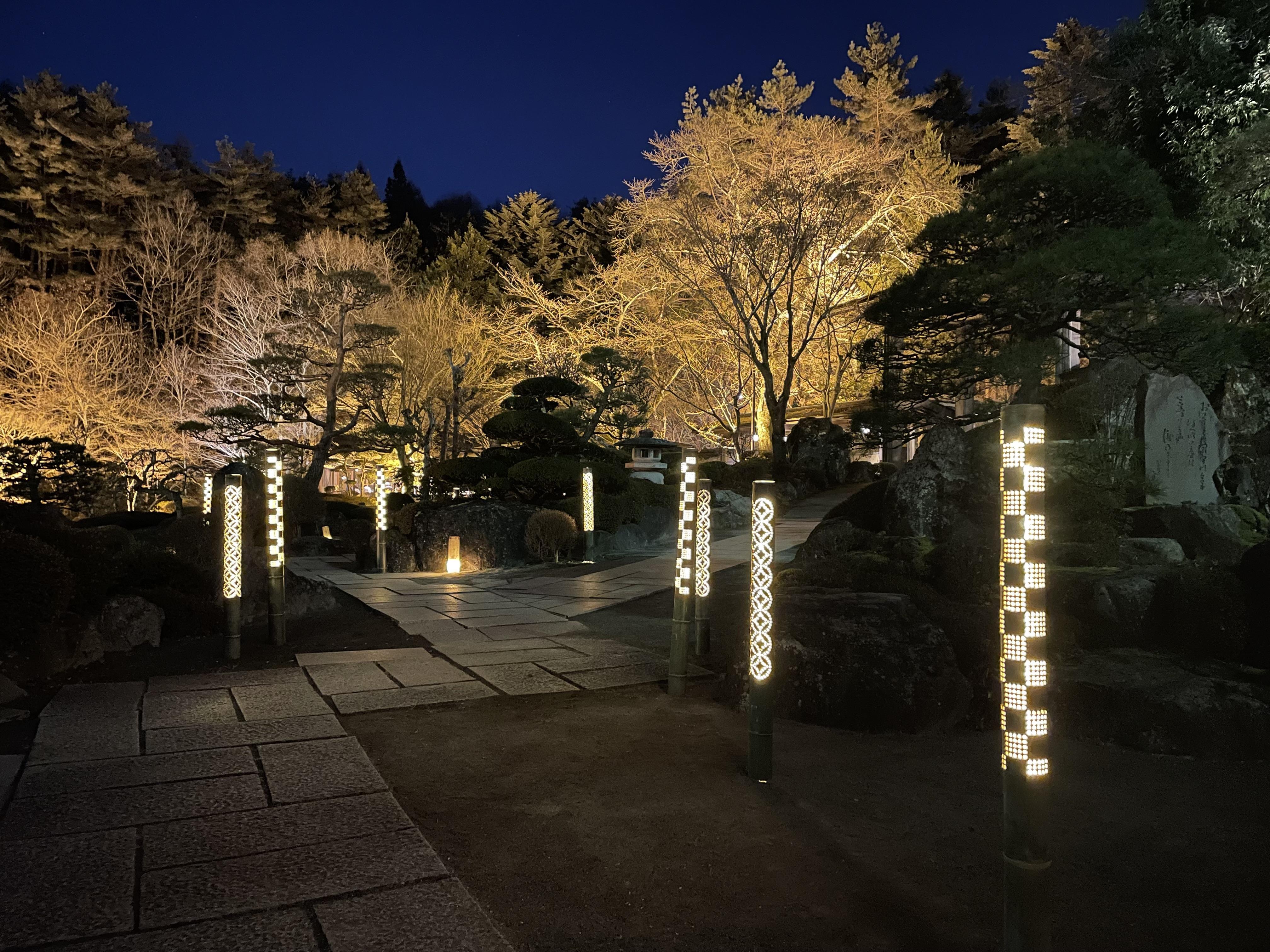 Our garden is currently bathed in the gentle glow of countless bamboo lanterns.