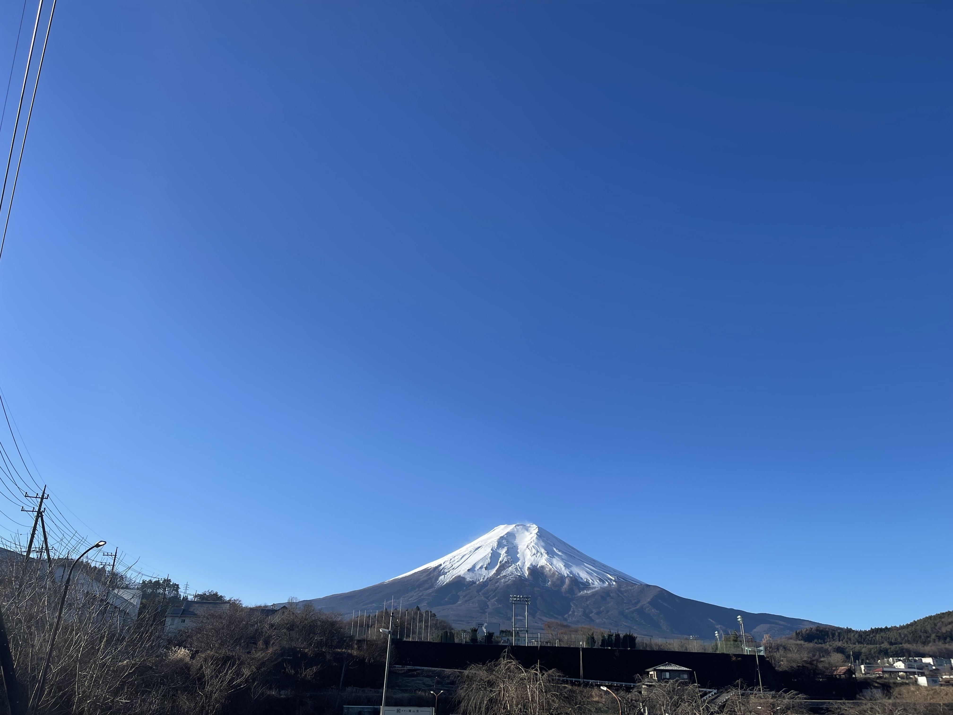 The first view of Mount Fuji this year is breathtaking under a clear blue sky!
