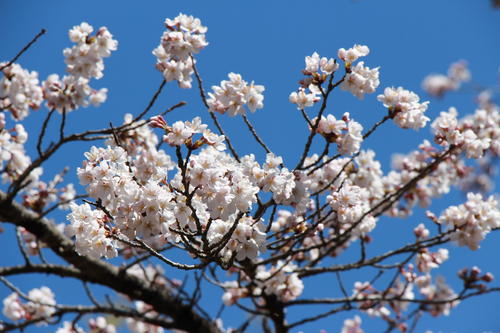 桜のピンク色と空の青色の組合せがとても鮮やかなコントラストです。