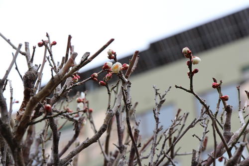 例年より早く、また昨年よりも若干早めに梅が開花いたしました。