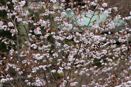 庭園の梅は徐々にちりはじめていますが、暖かな陽気に誘われて桜の花がどんどん開花してまいりました