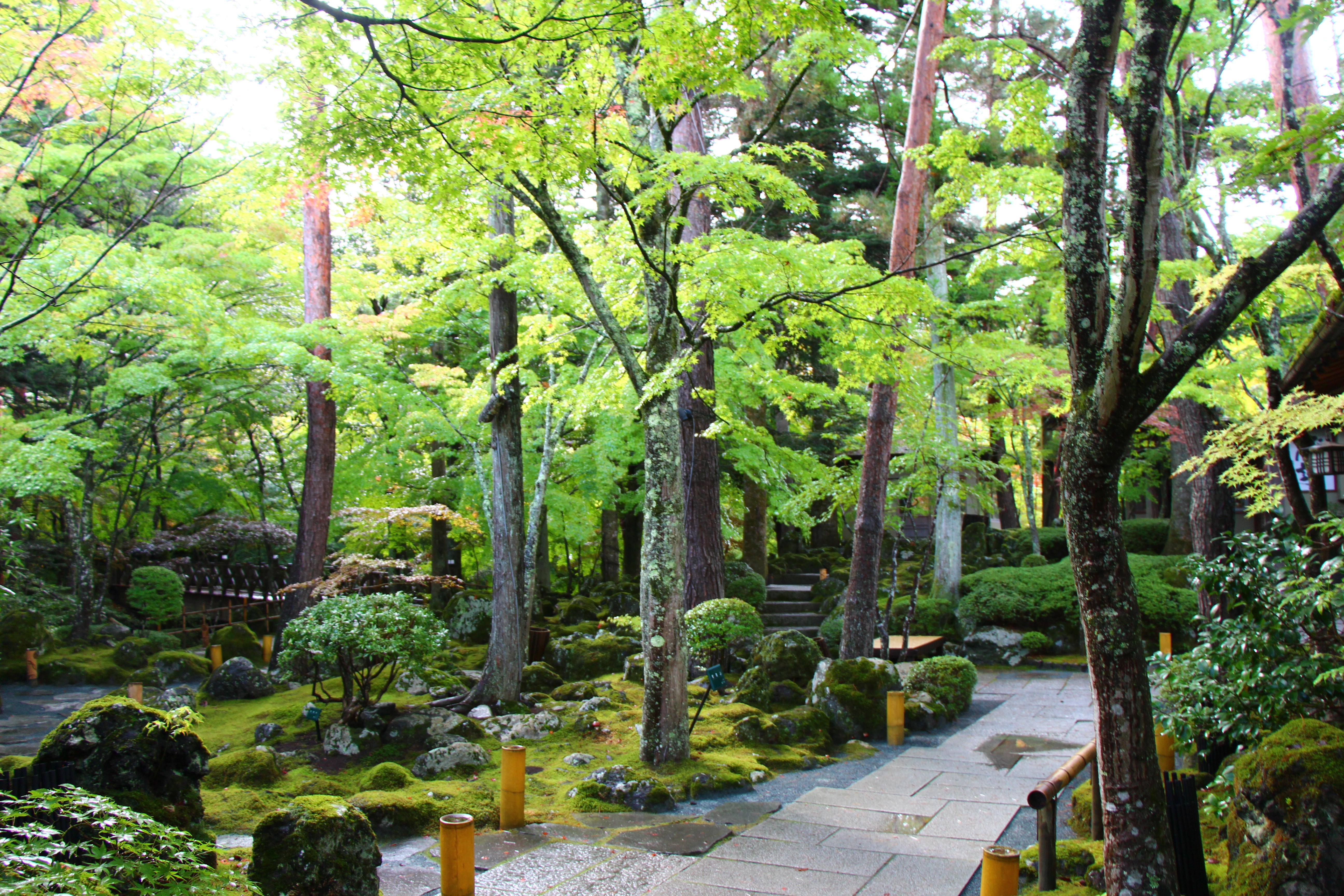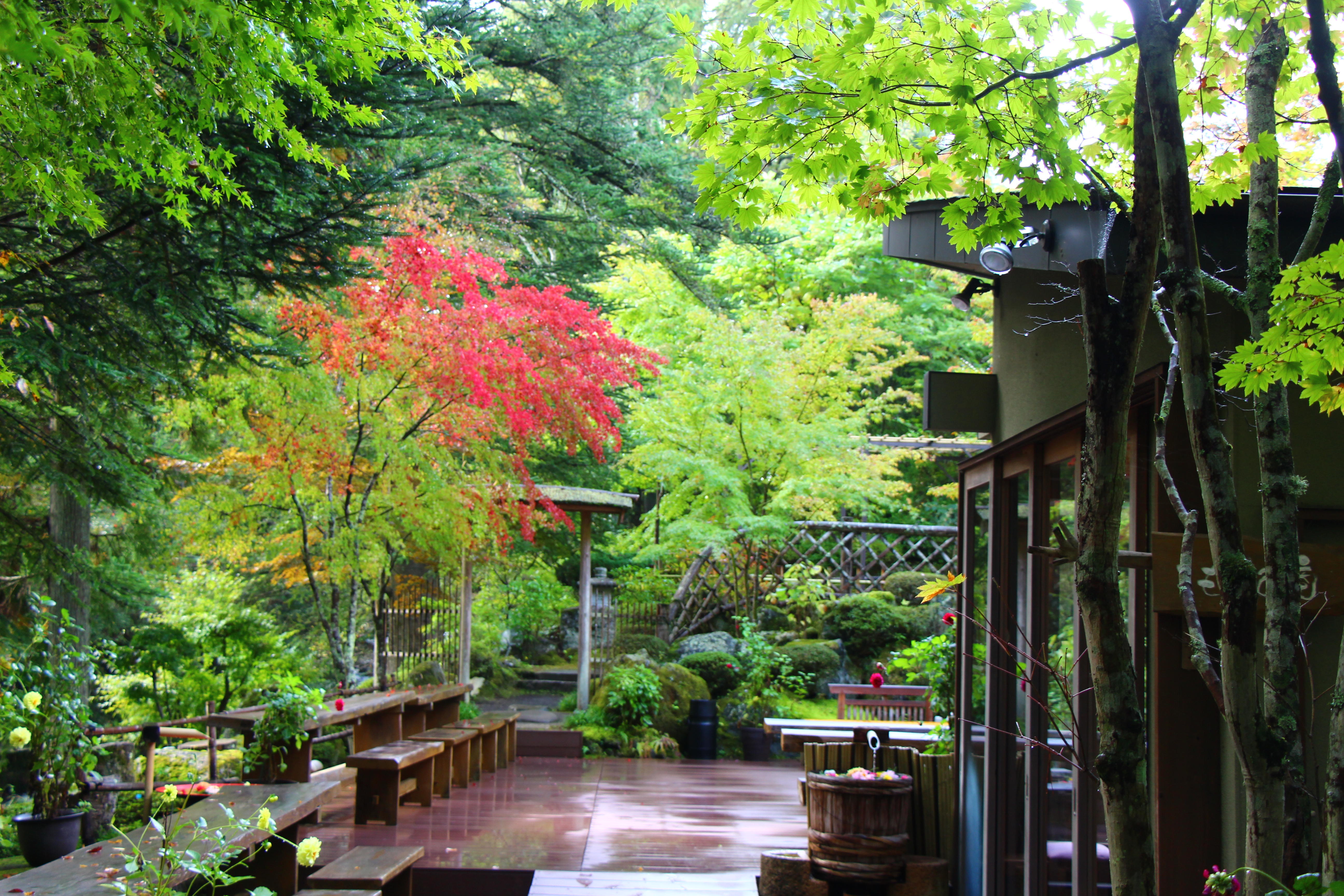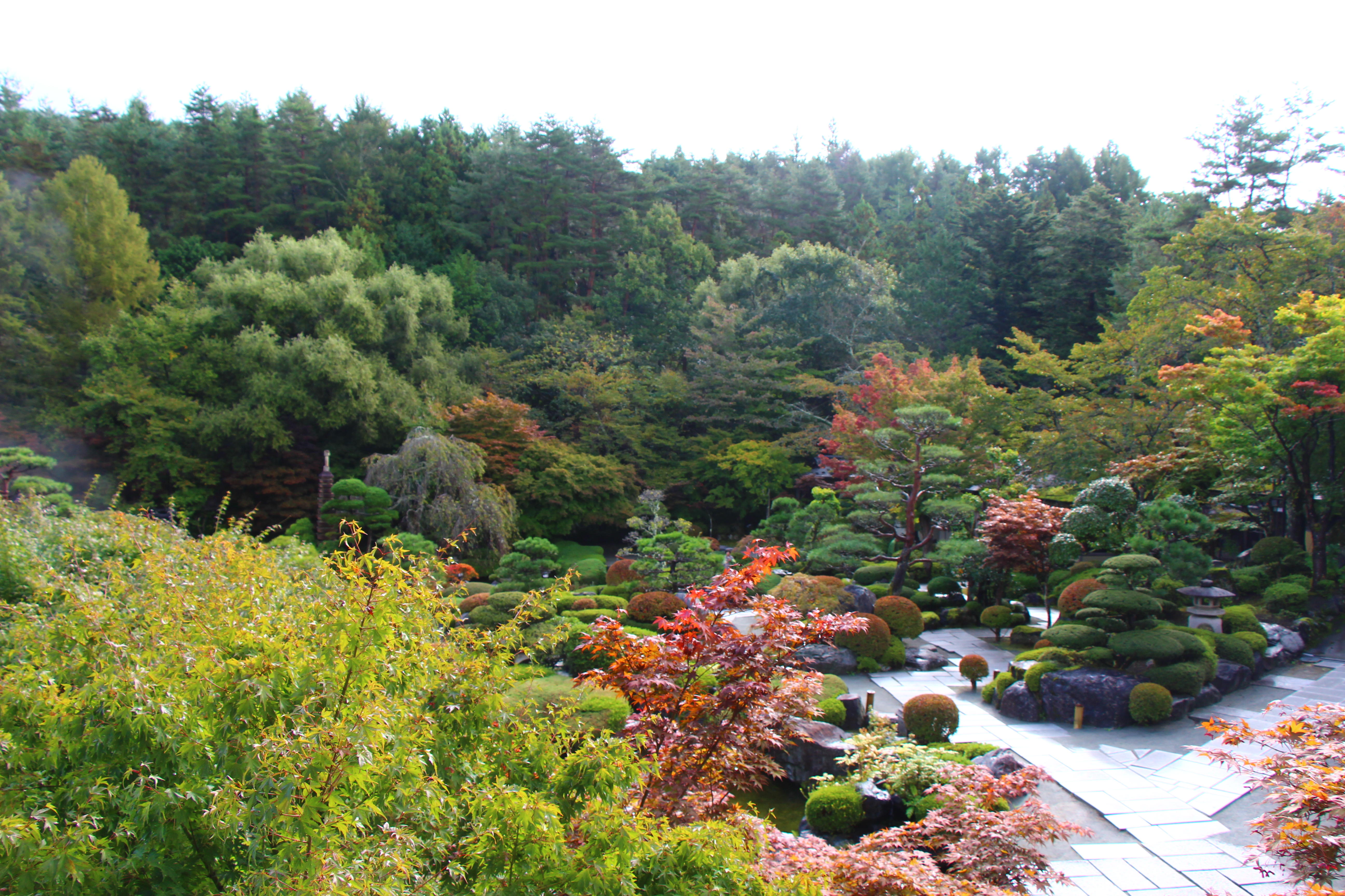 昨日の降雨で本日は朝露に濡れた庭園が色濃く映っております