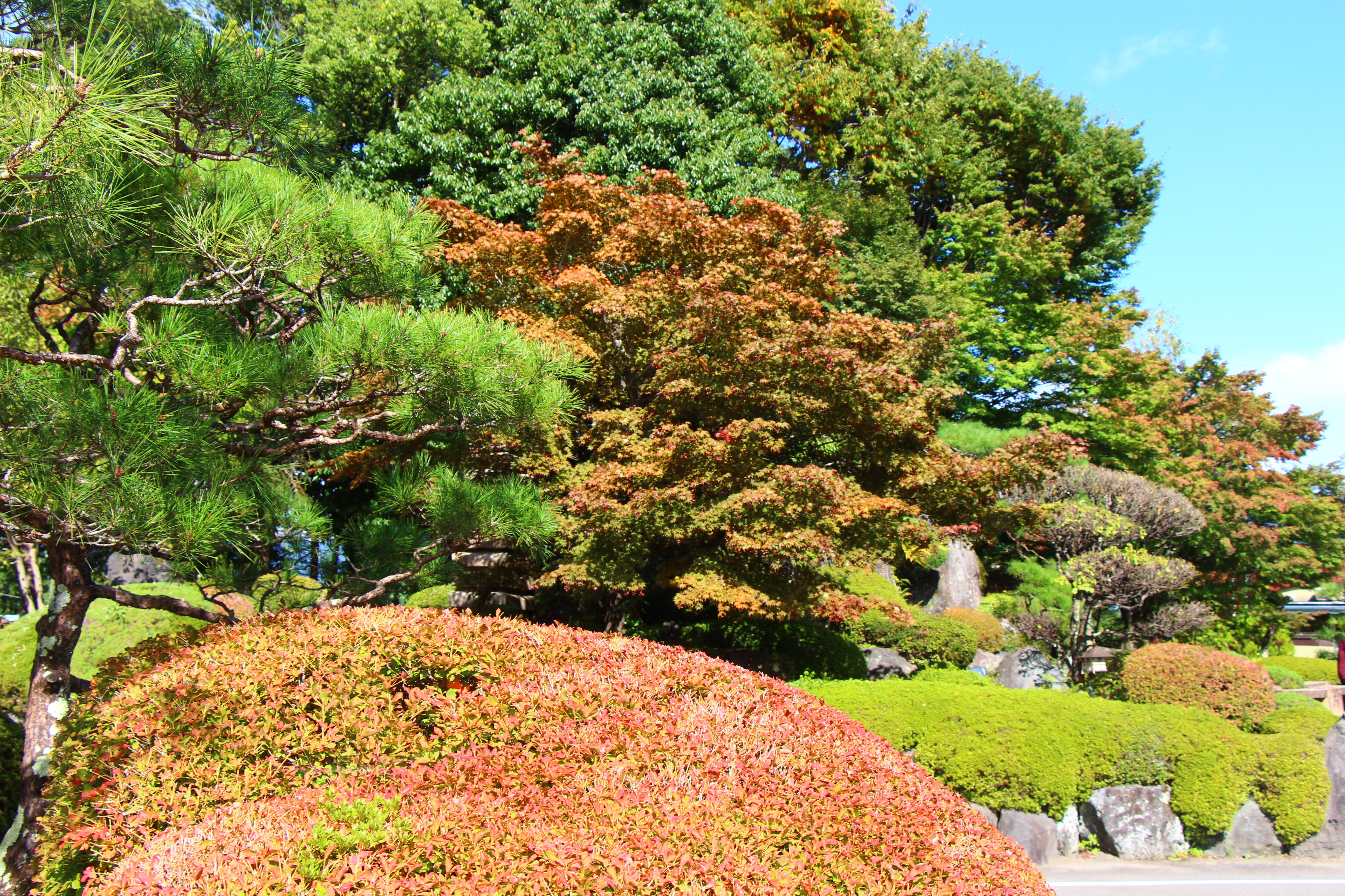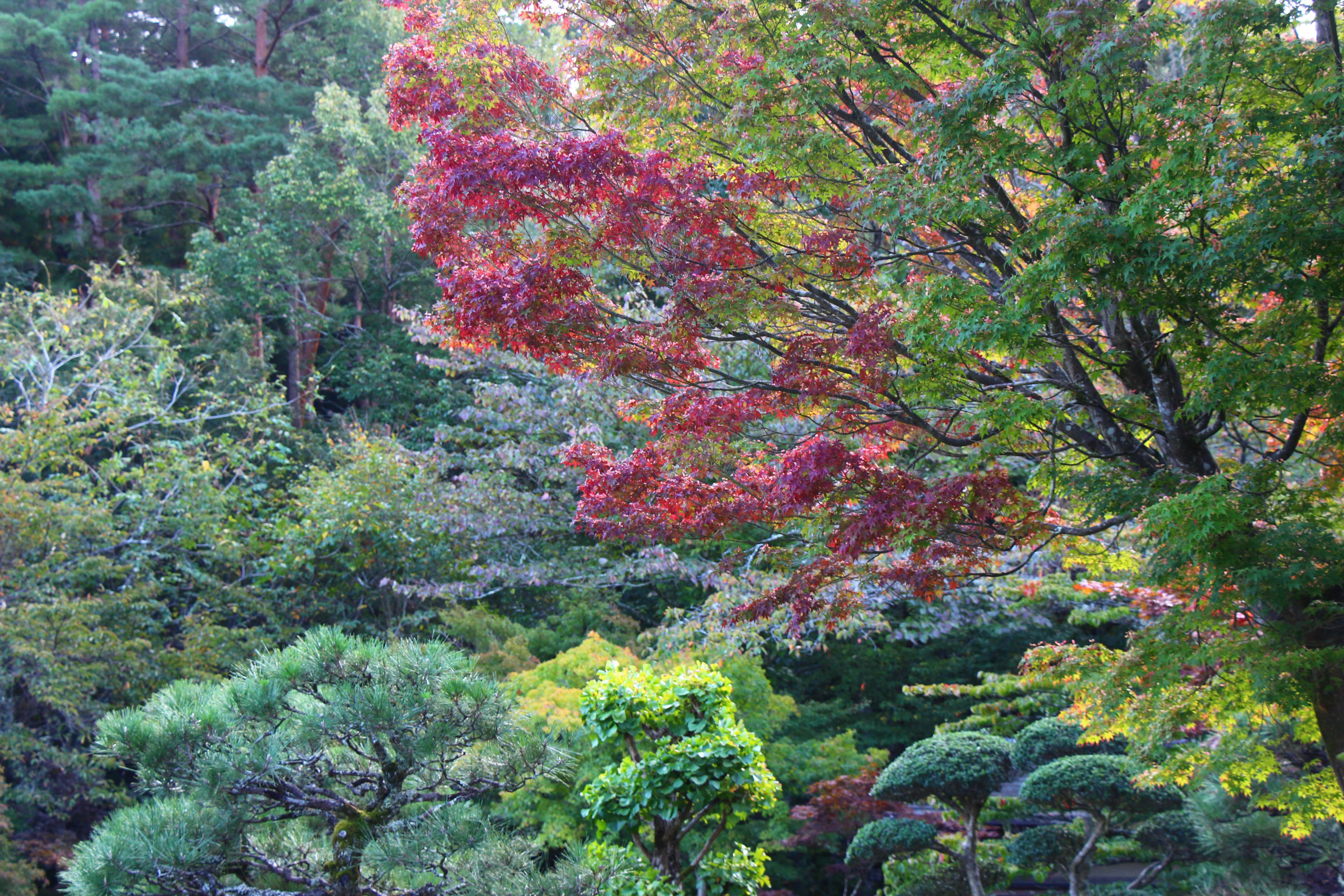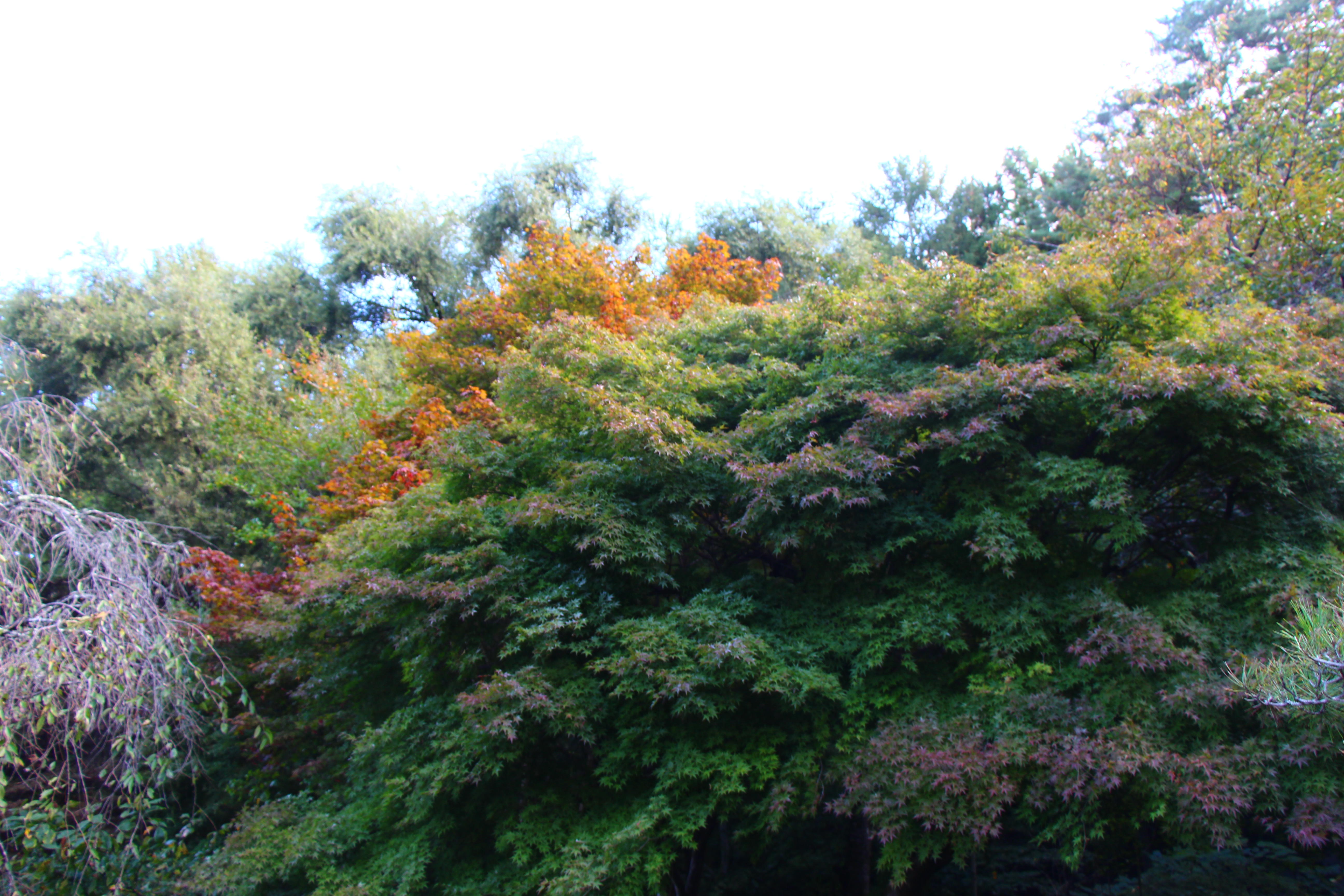 本日も暖かく紅葉も緑が多めの庭園の様子です