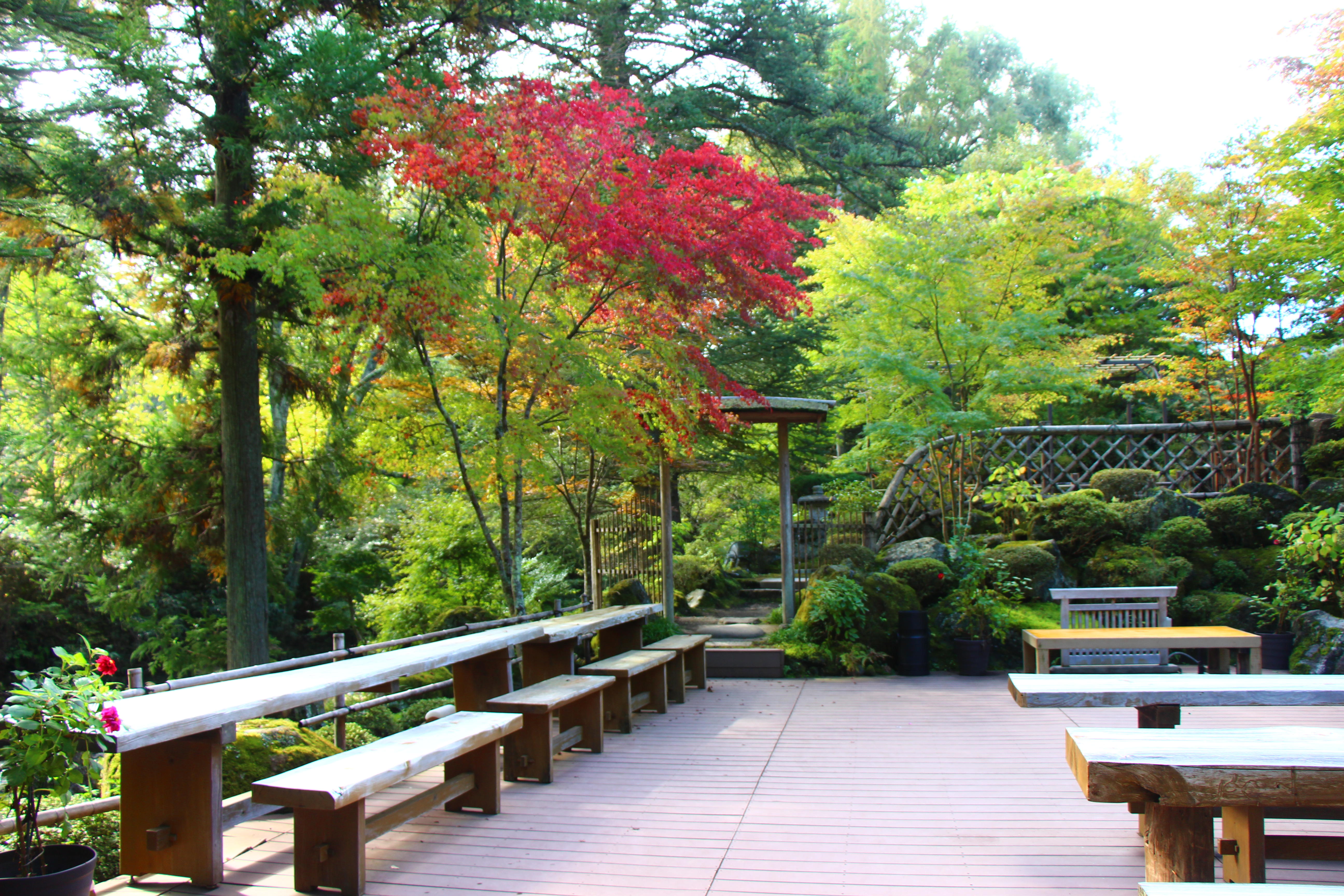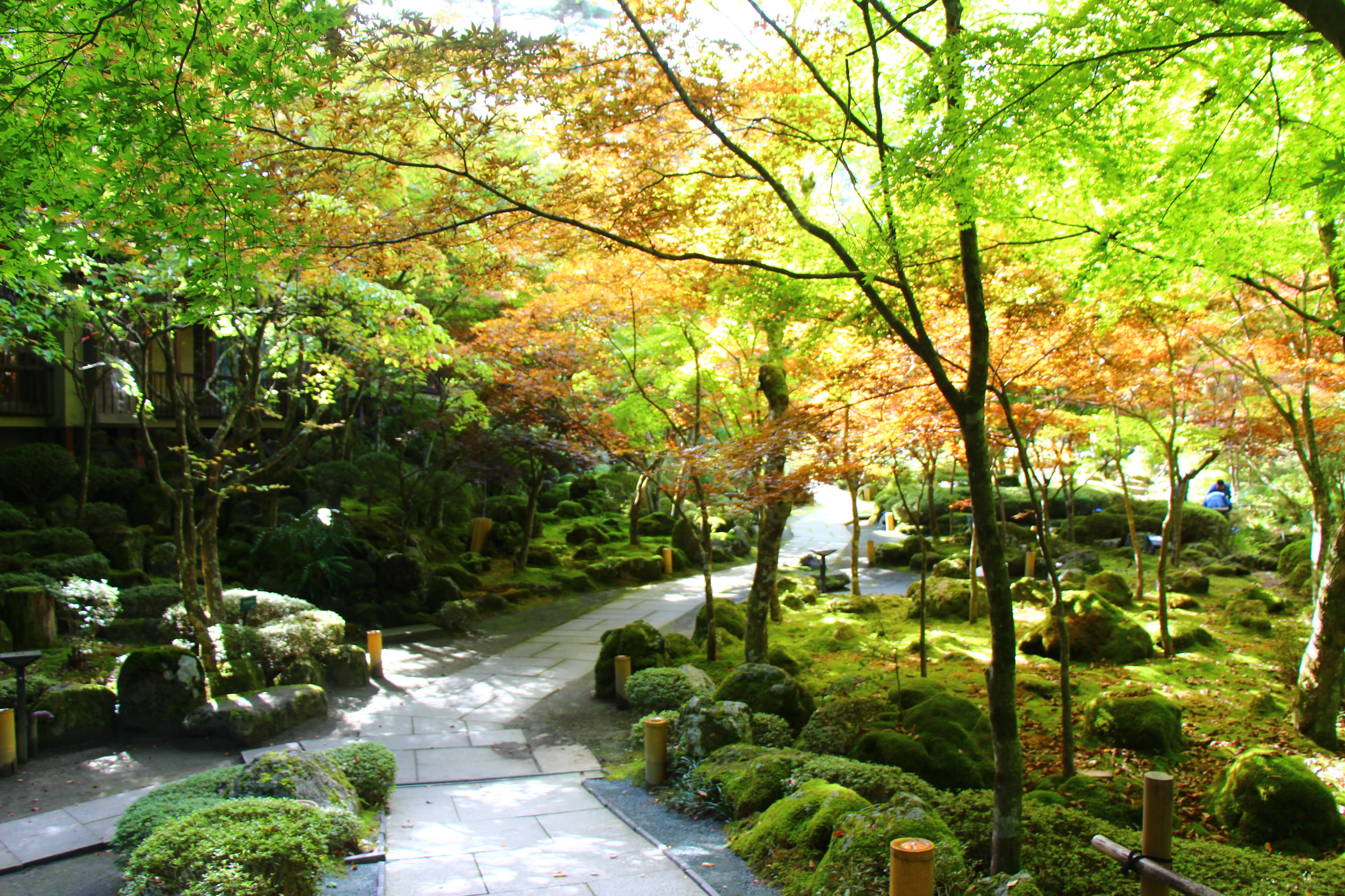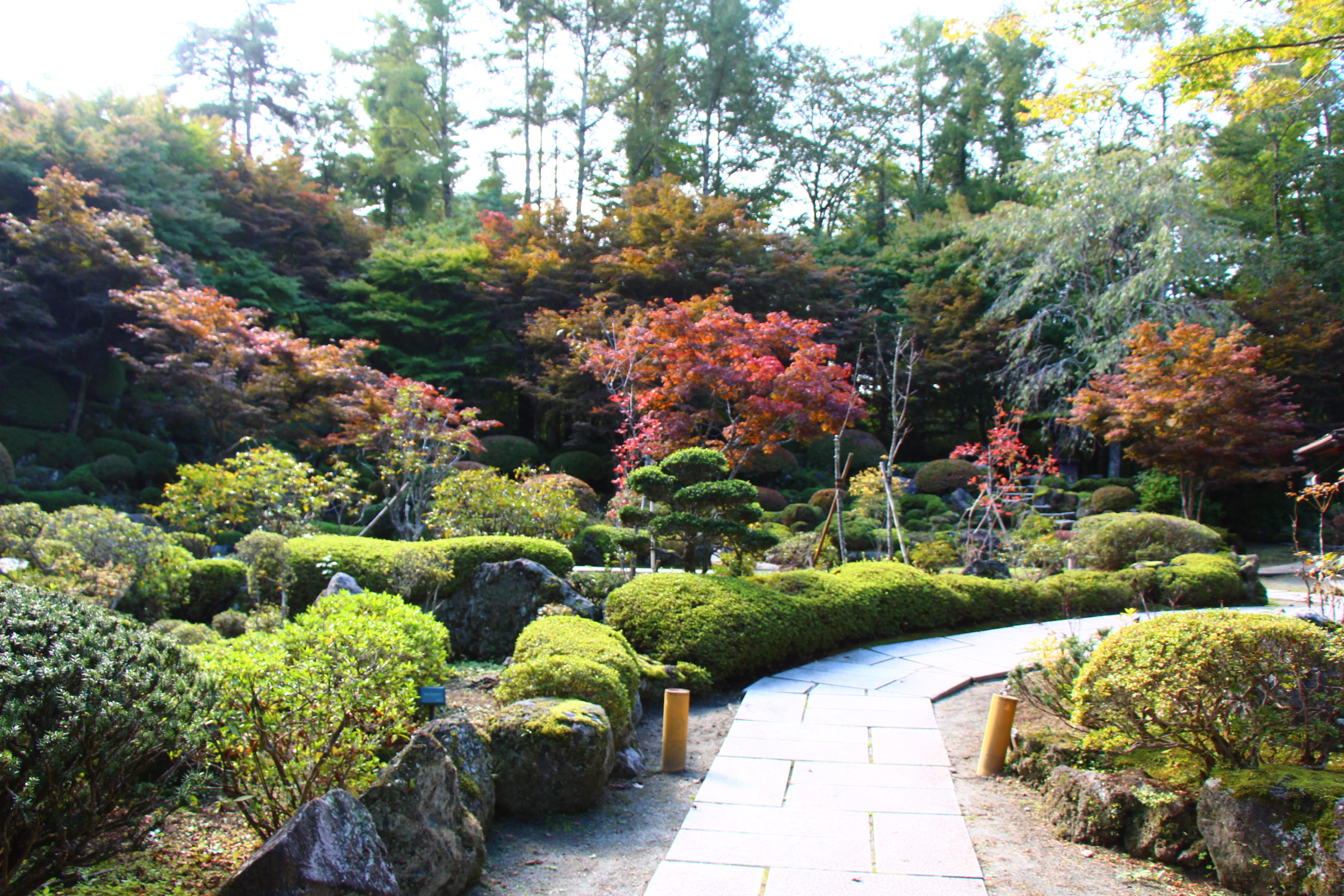 本日も暖かく紅葉も緑が多めの庭園の様子です