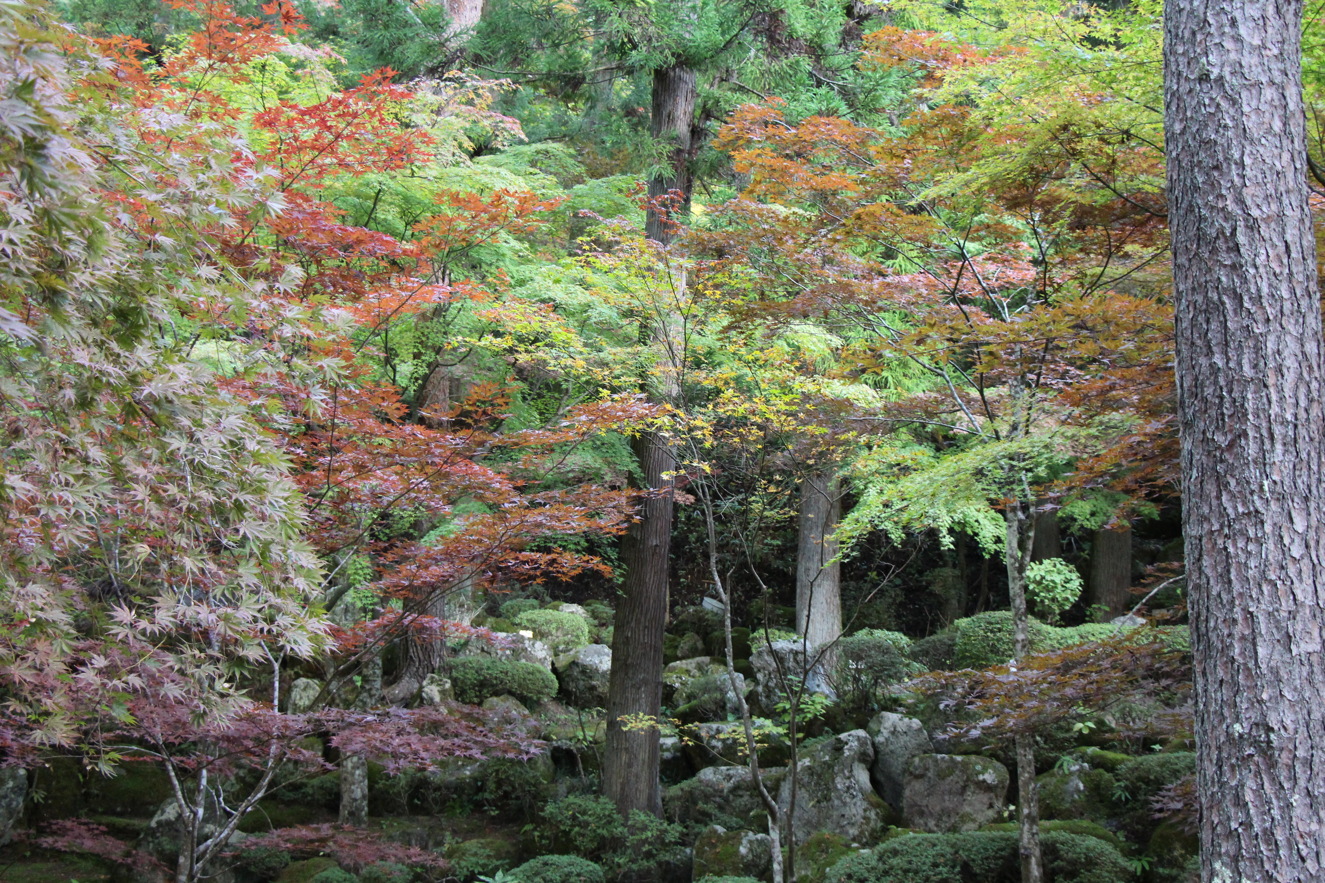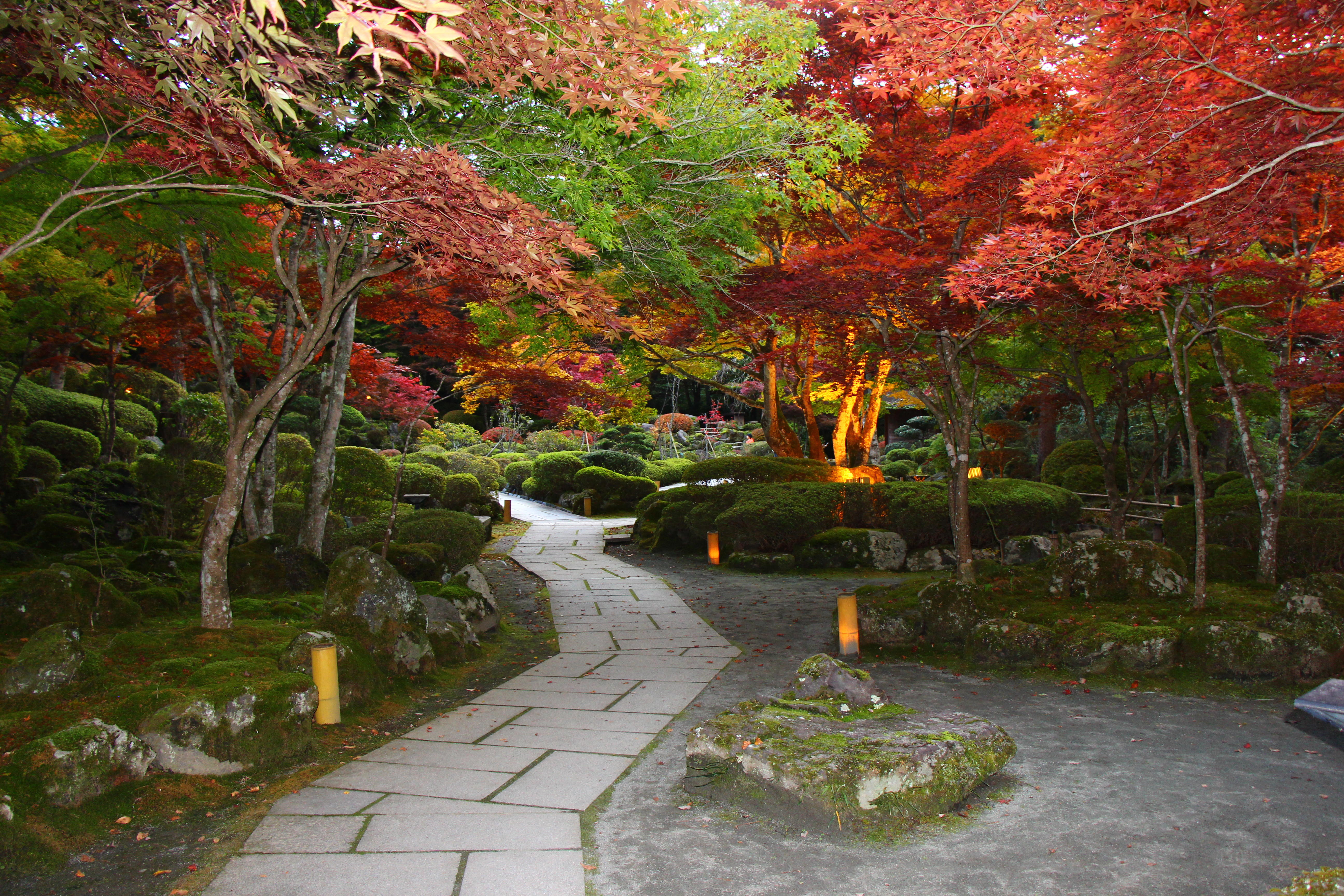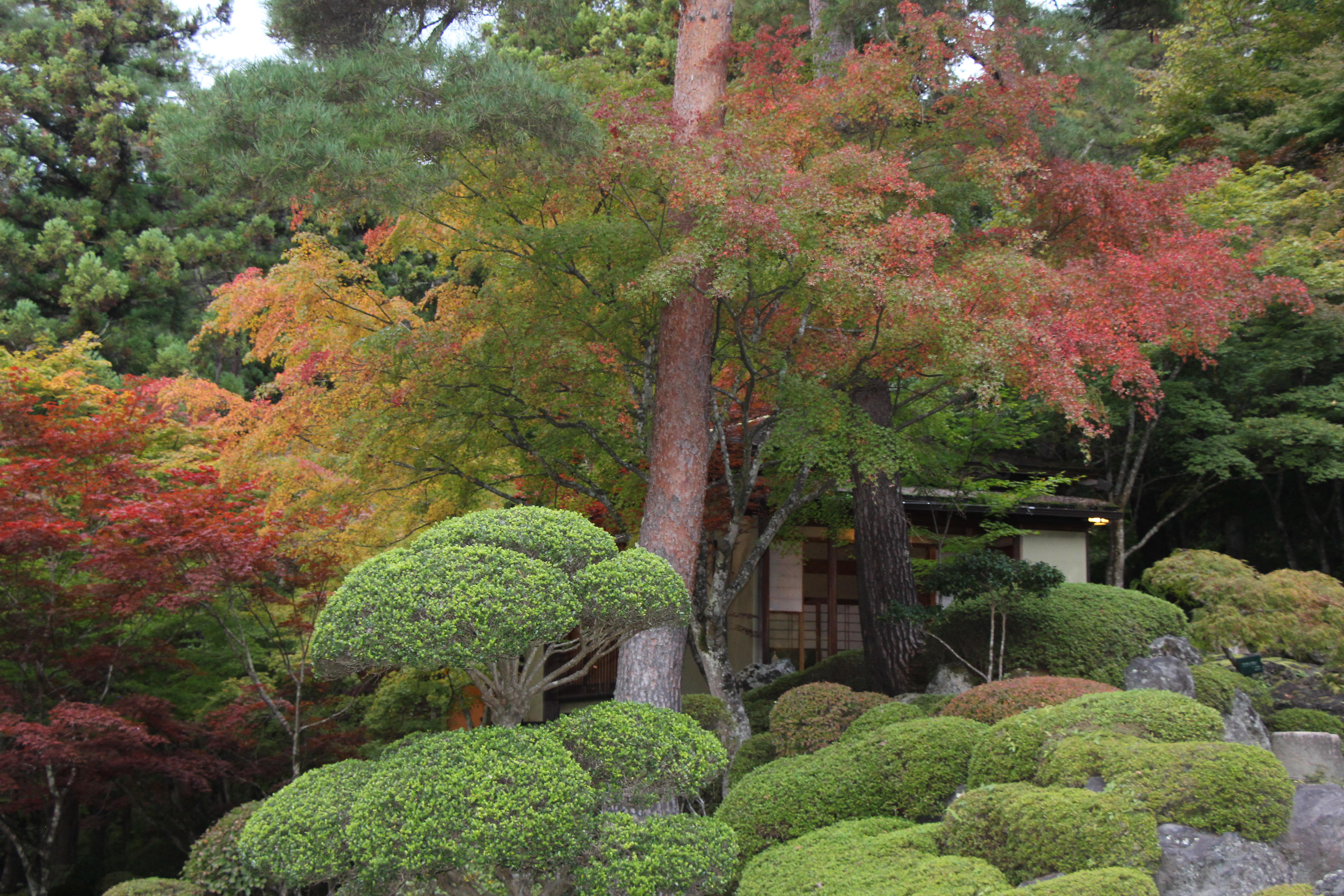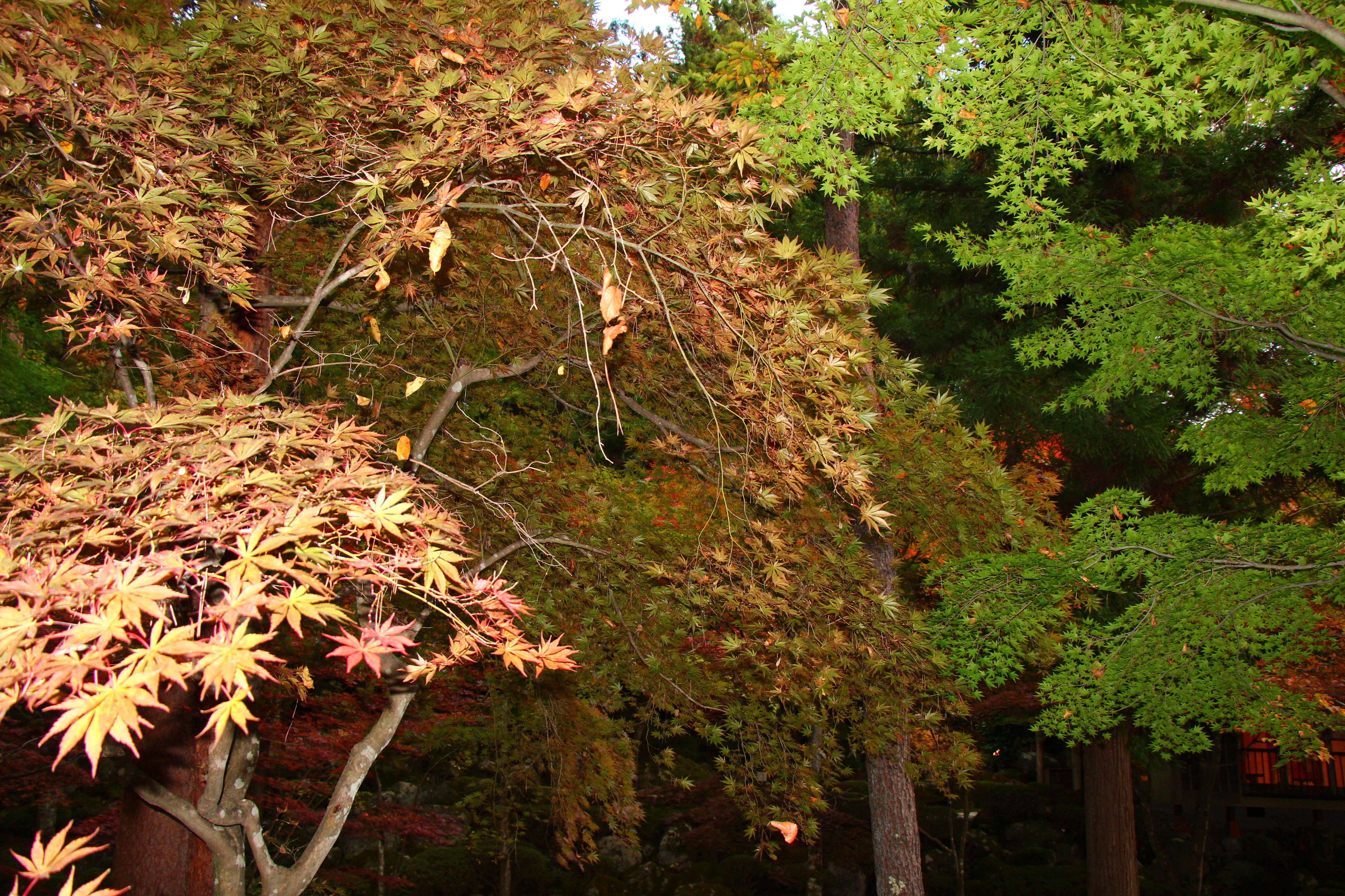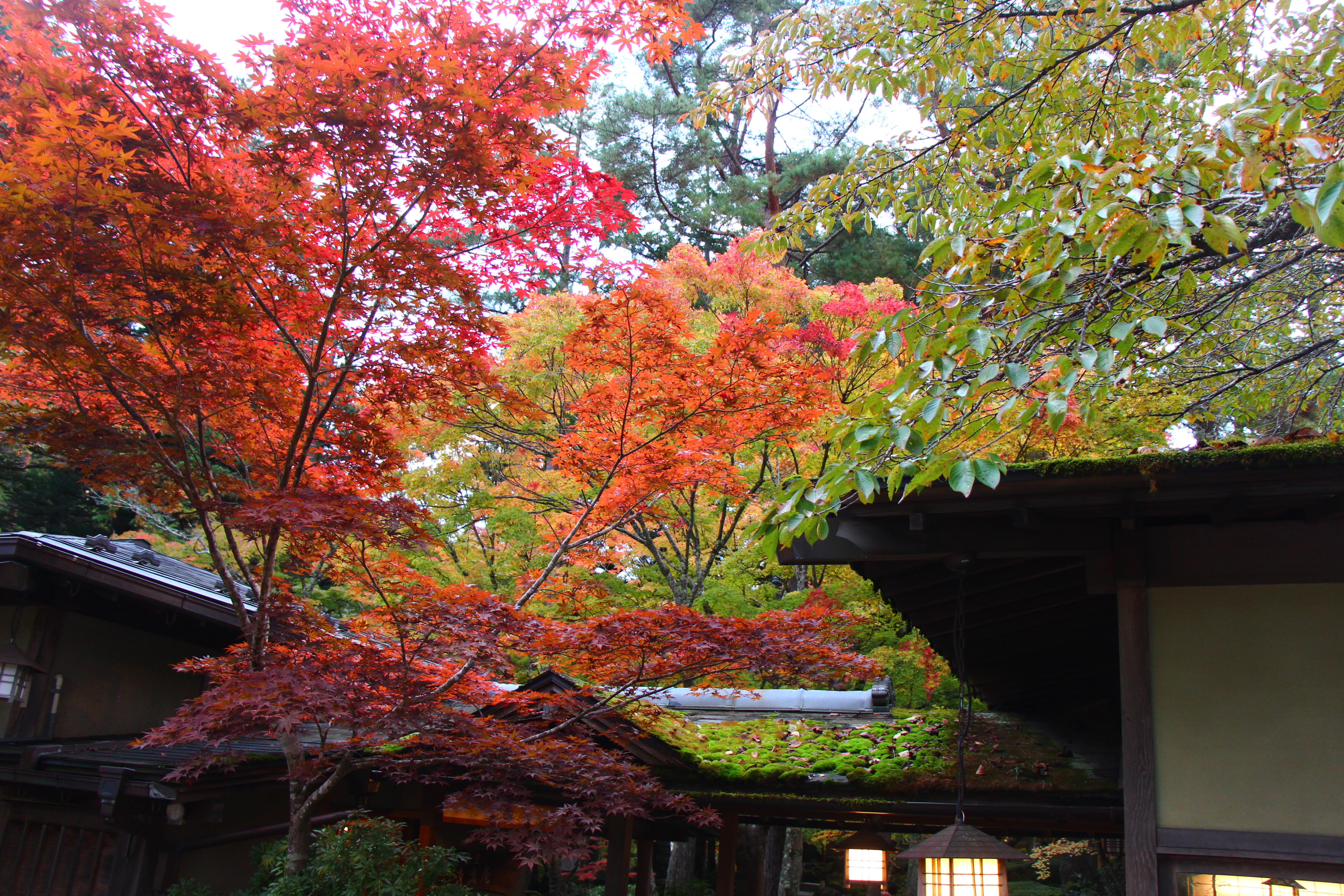 庭園の紅葉は少しずつ色づきを増しており特に焼き芋を提供しているこもれび庵の側に一際紅葉の進んだ木がございます