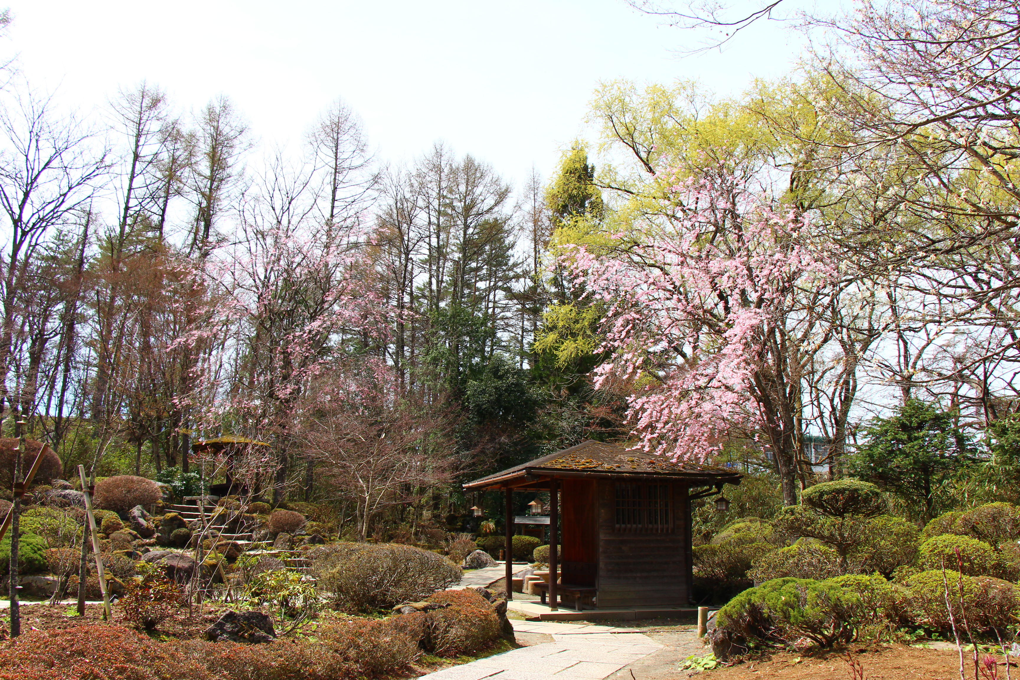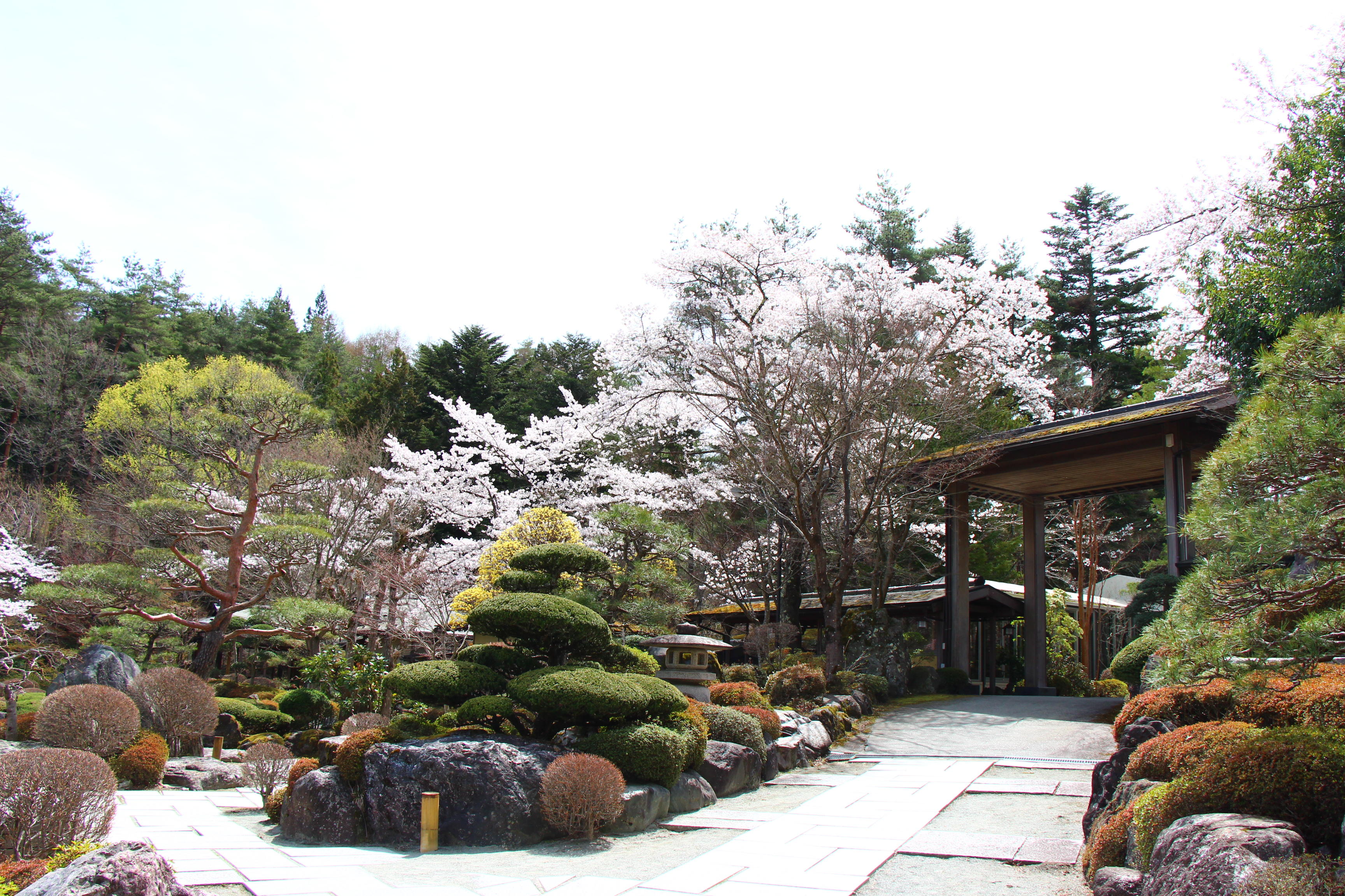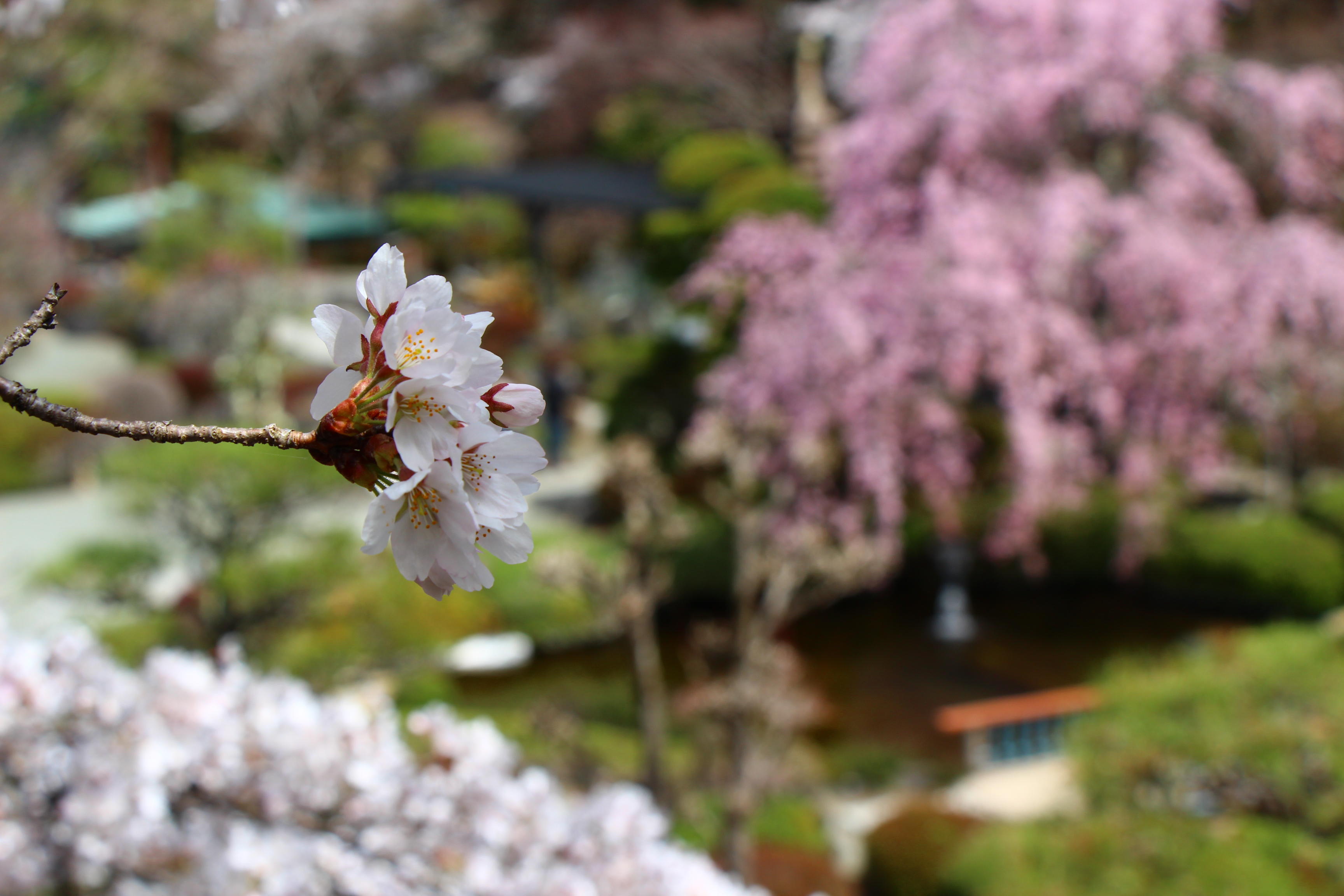 庭園の至る所で桜が咲き乱れております