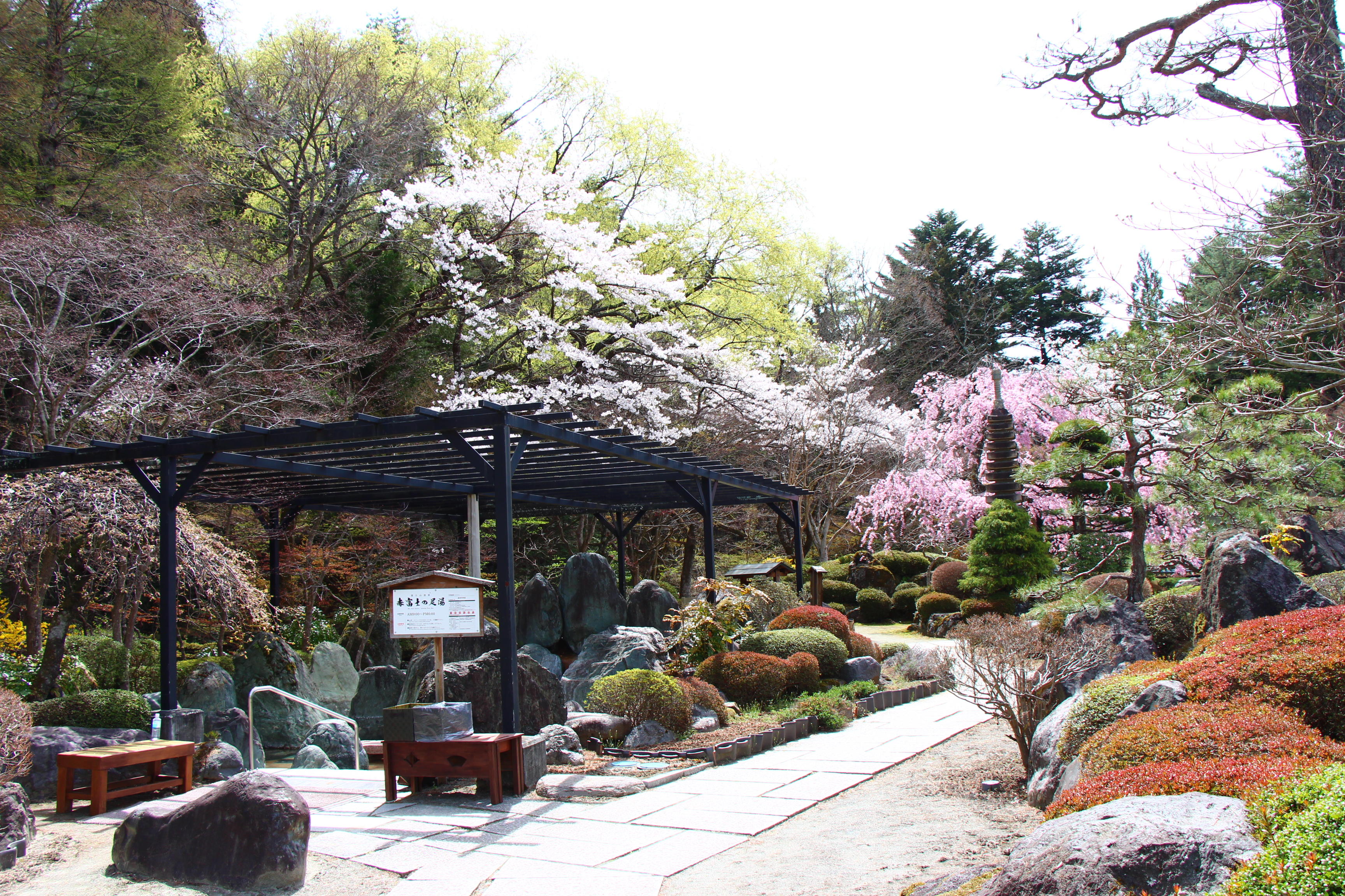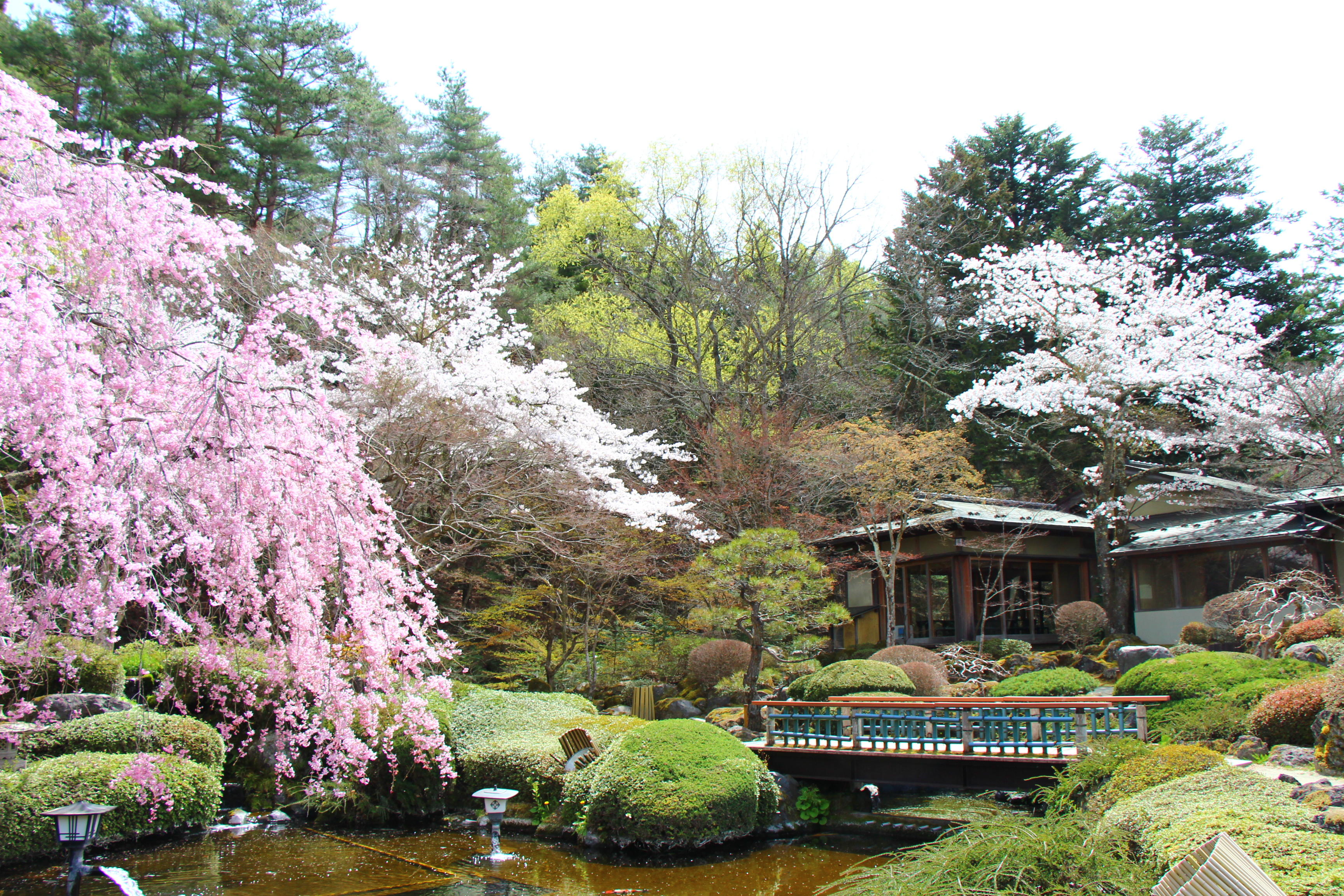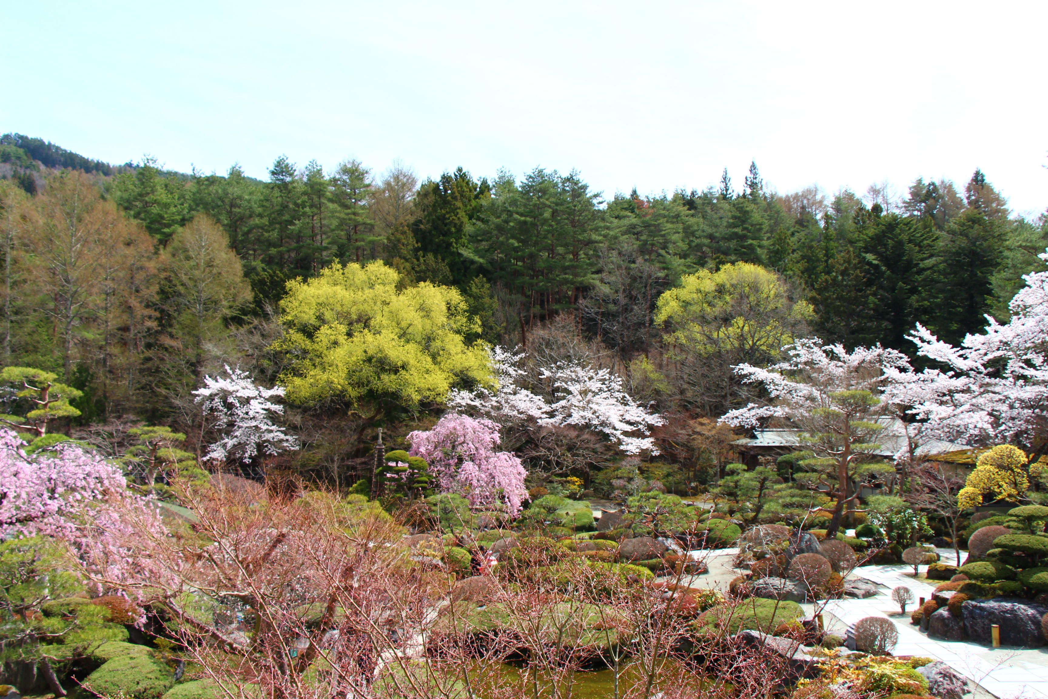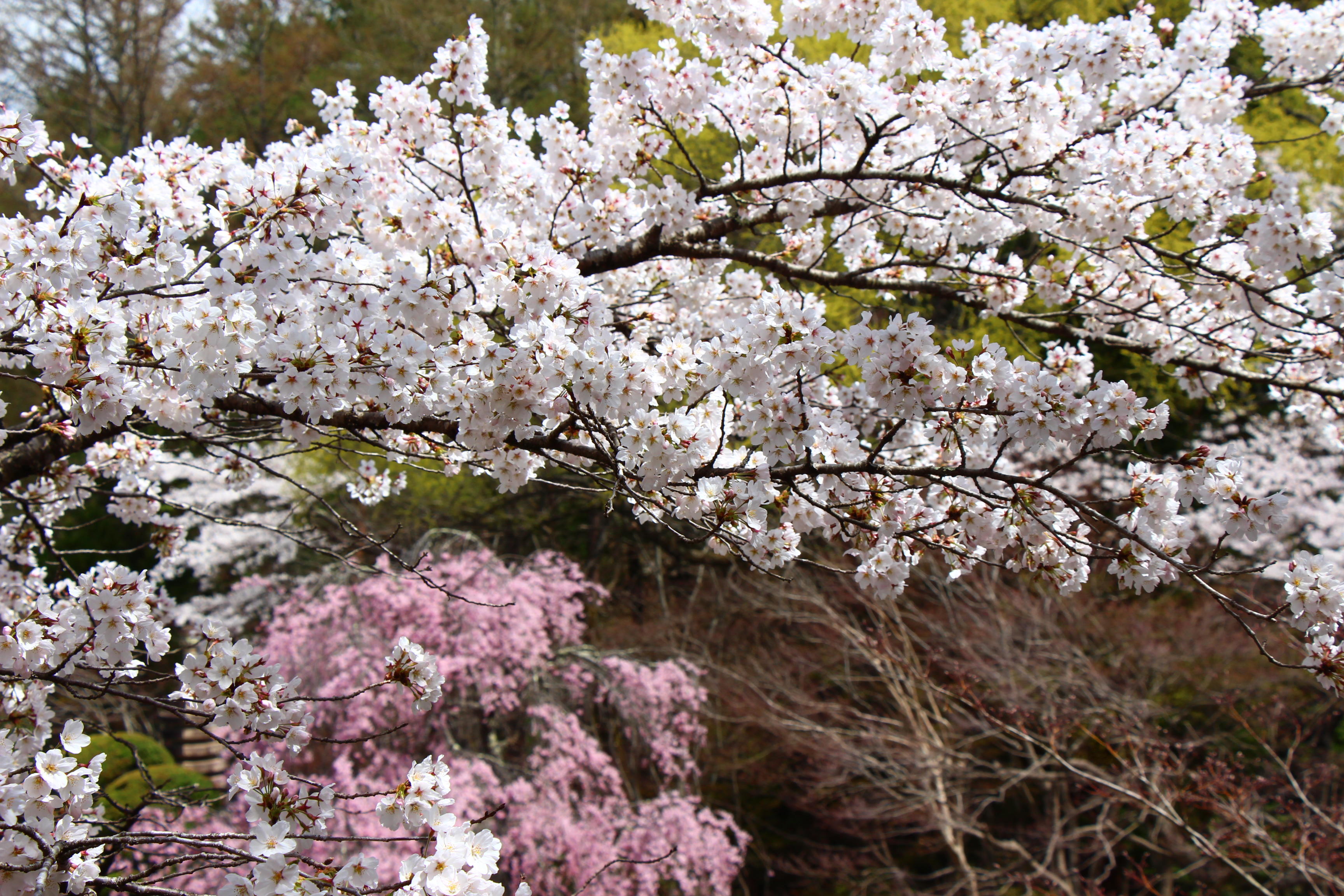 庭園の至る所で桜が咲き乱れております