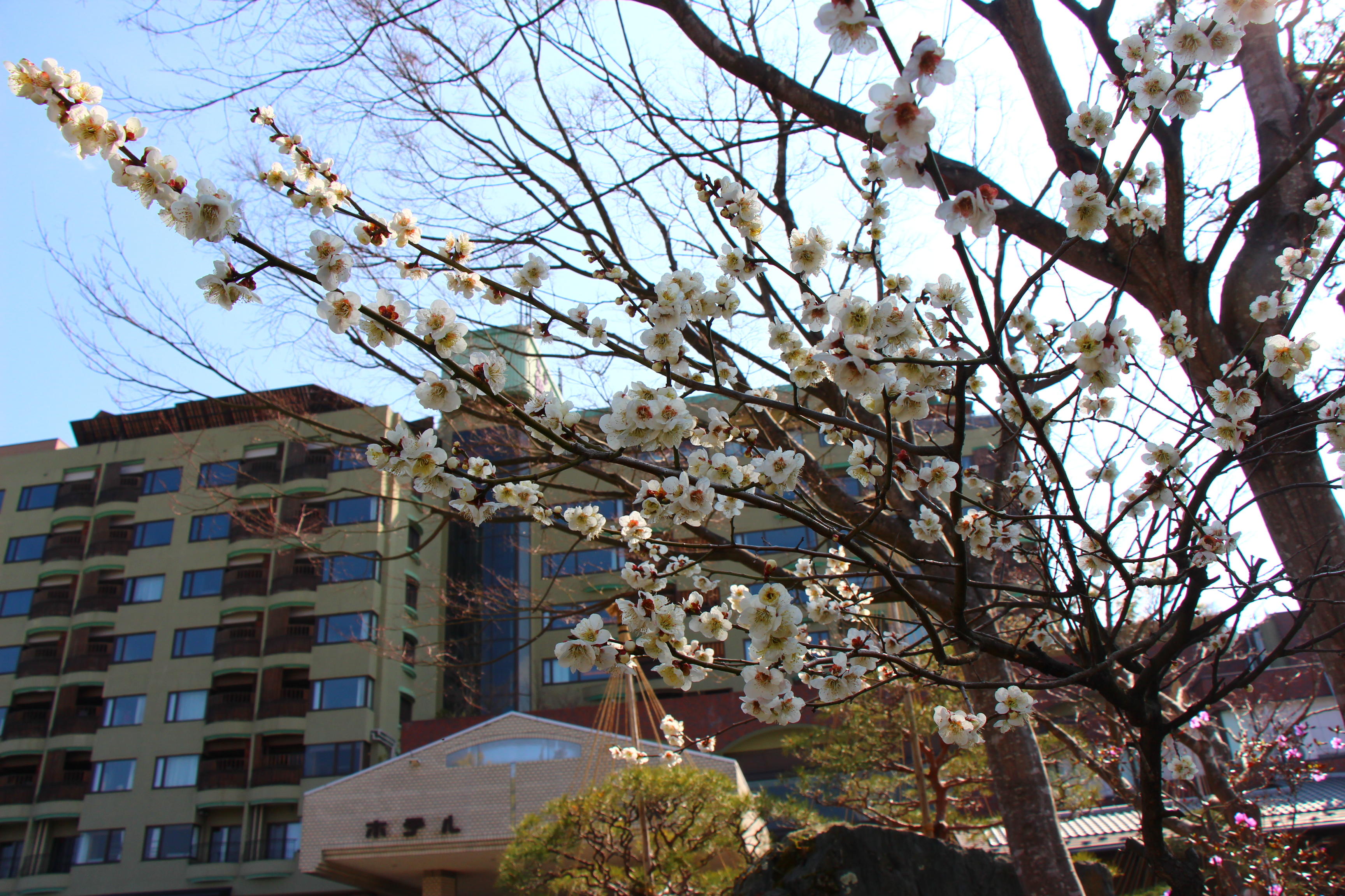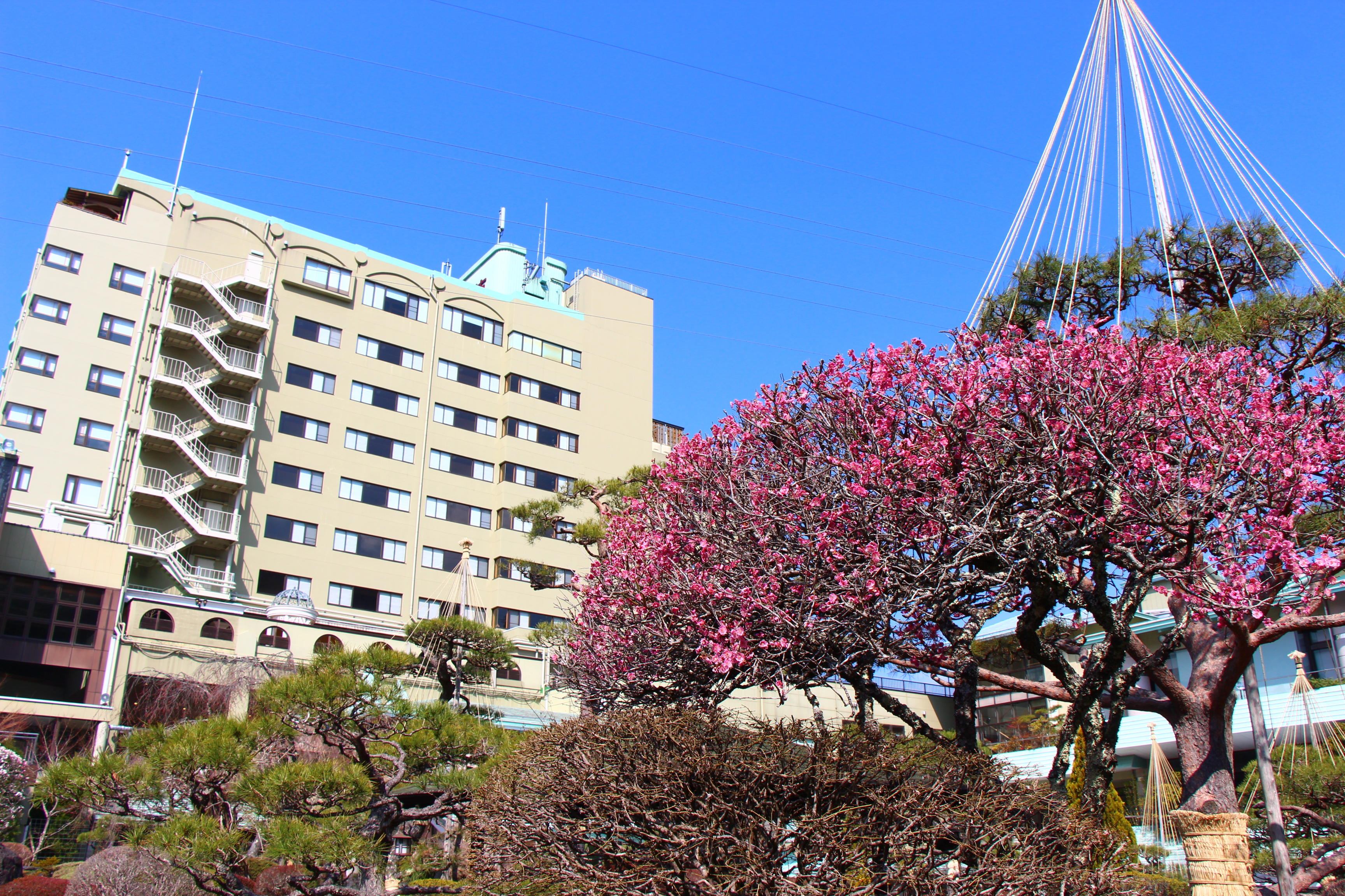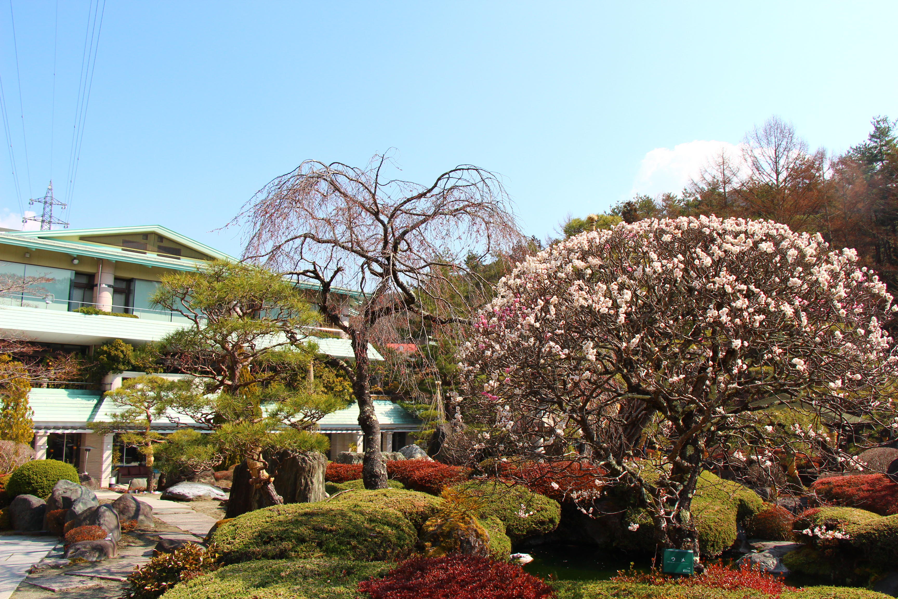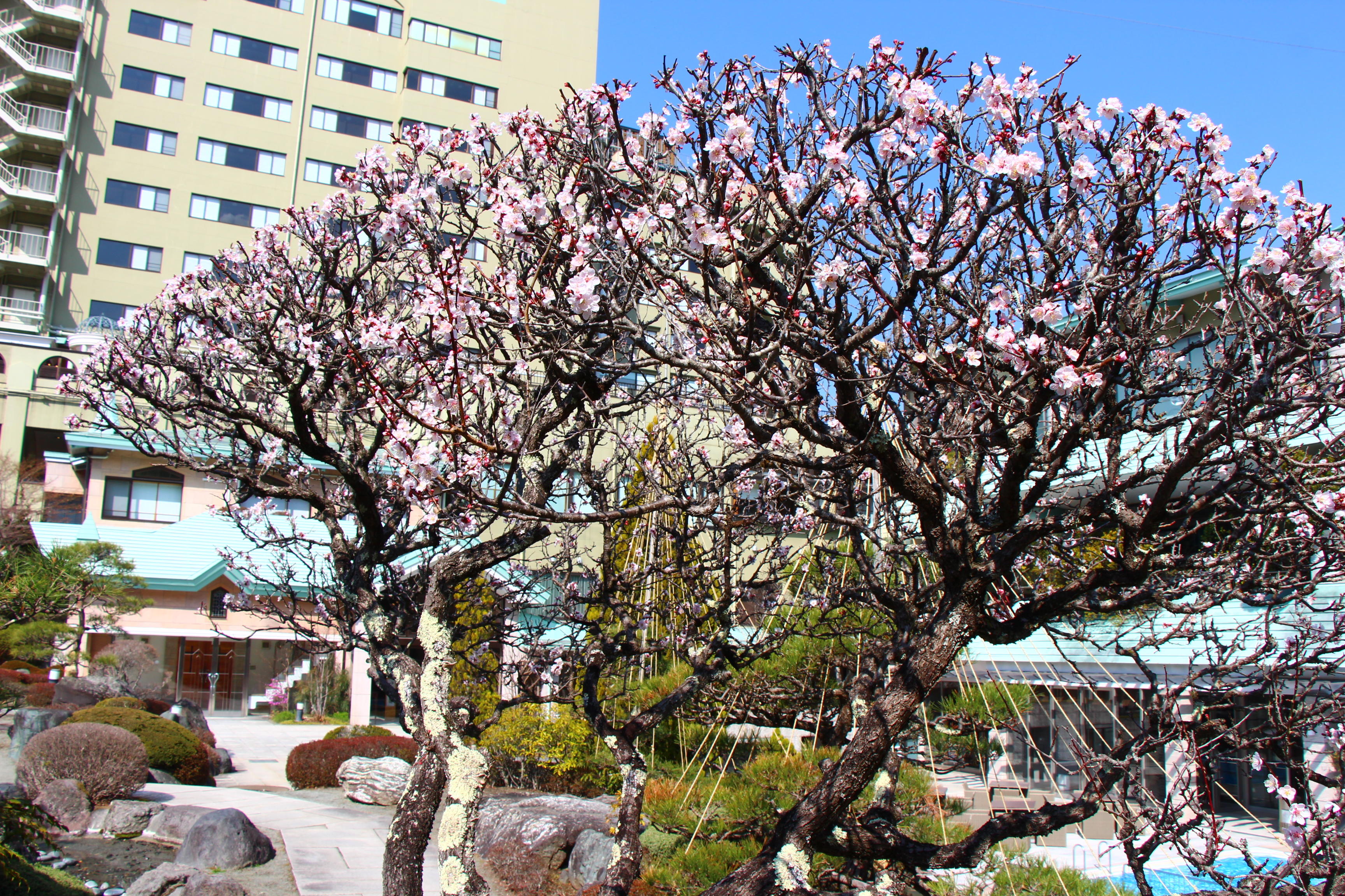 庭園の梅の花は満開を迎え