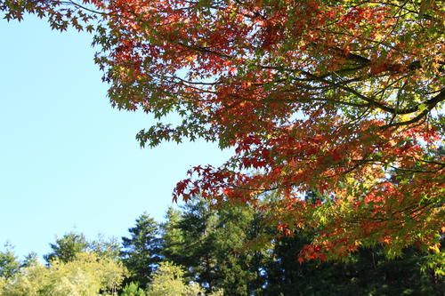 庭園の紅葉も赤・黄・緑とにぎやかになってきました。