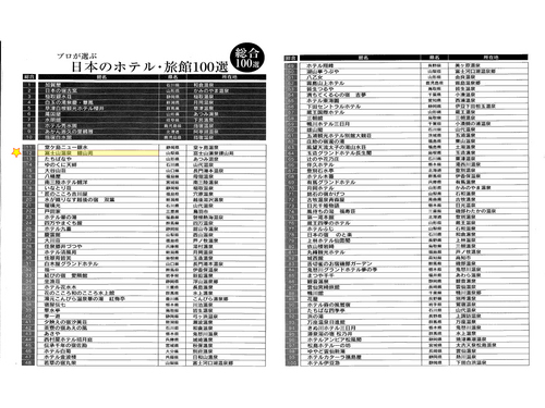 先日プロが選ぶホテル・旅館100選の表彰式がありました。