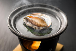 新鮮な蝦夷鮑を、料理長特製バターの香りが引き立つ陶板焼きでご賞味下さい。