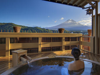 四季折々、時間によって多彩な表情を見せる富士山をお愉しみ頂くのに、これ以上のお部屋はございません。お部屋、テラス、露天風呂から、心ゆくまでご堪能ください。