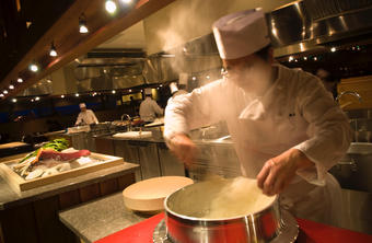 料理人の技、躍動感あるパフォーマンス、音、香りなど五感に響く、食の感動をお届け。