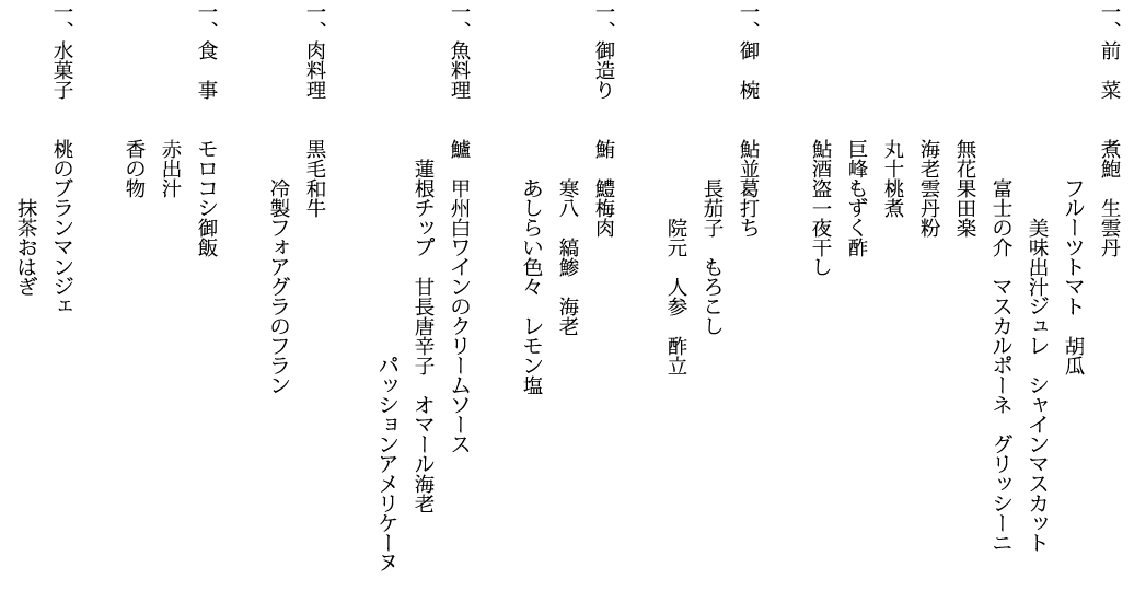 特別な空間で、一期一会のお料理をご賞味いただきます。