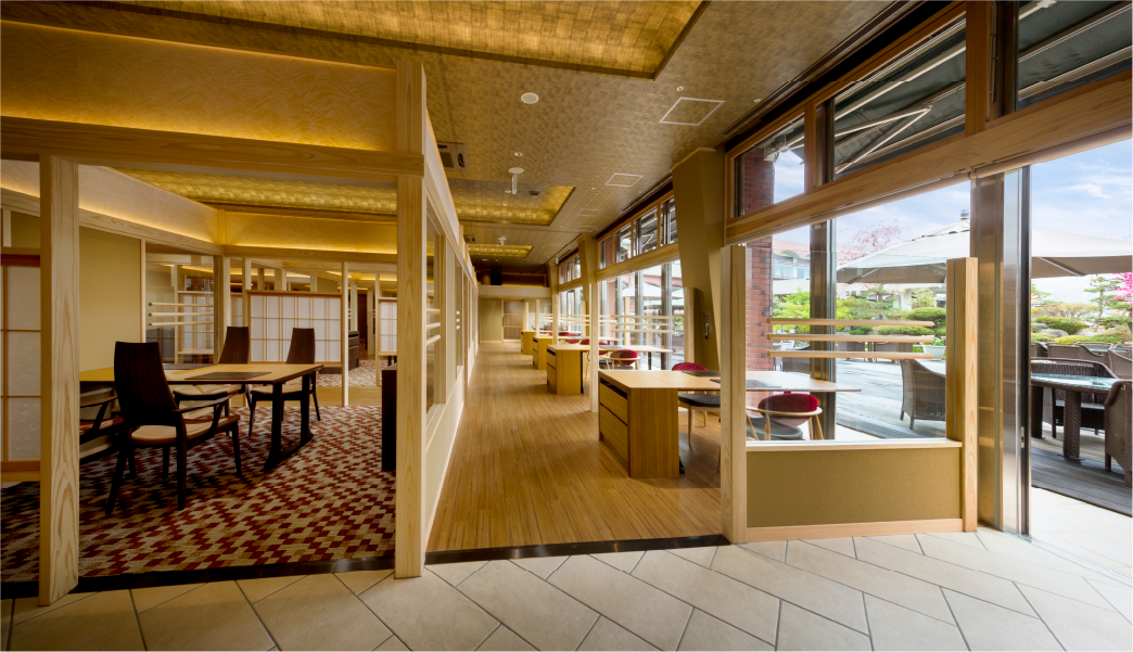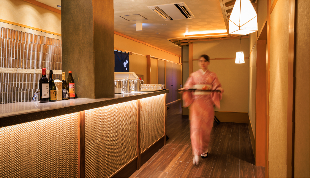 プライベートをあわせ持つ半個室の設え。