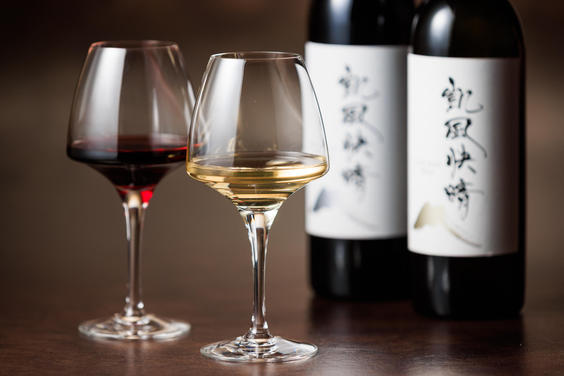 鐘山苑のオリジナルワイン「凱風快晴ルージュ」「凱風快晴ブラン」。