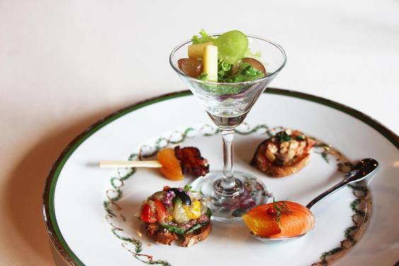 今回の訪問は、ホテル鐘山苑公式YouTube動画の撮影も兼ねて伺わせていただいたので、一通り見学させていただいた後は動画出演者がレストラン「ゼルコバ」にて山梨県産の食材を使用した一皿&ワインのペアリングを堪能させていただきました。見るだけで美味しそうなお料理。まるで宝石みたいです。こんなに雰囲気の良いレストランがあることを恥ずかしながら存じ上げなかったので、いつか私もこちらのレストランを利用したいと思います。