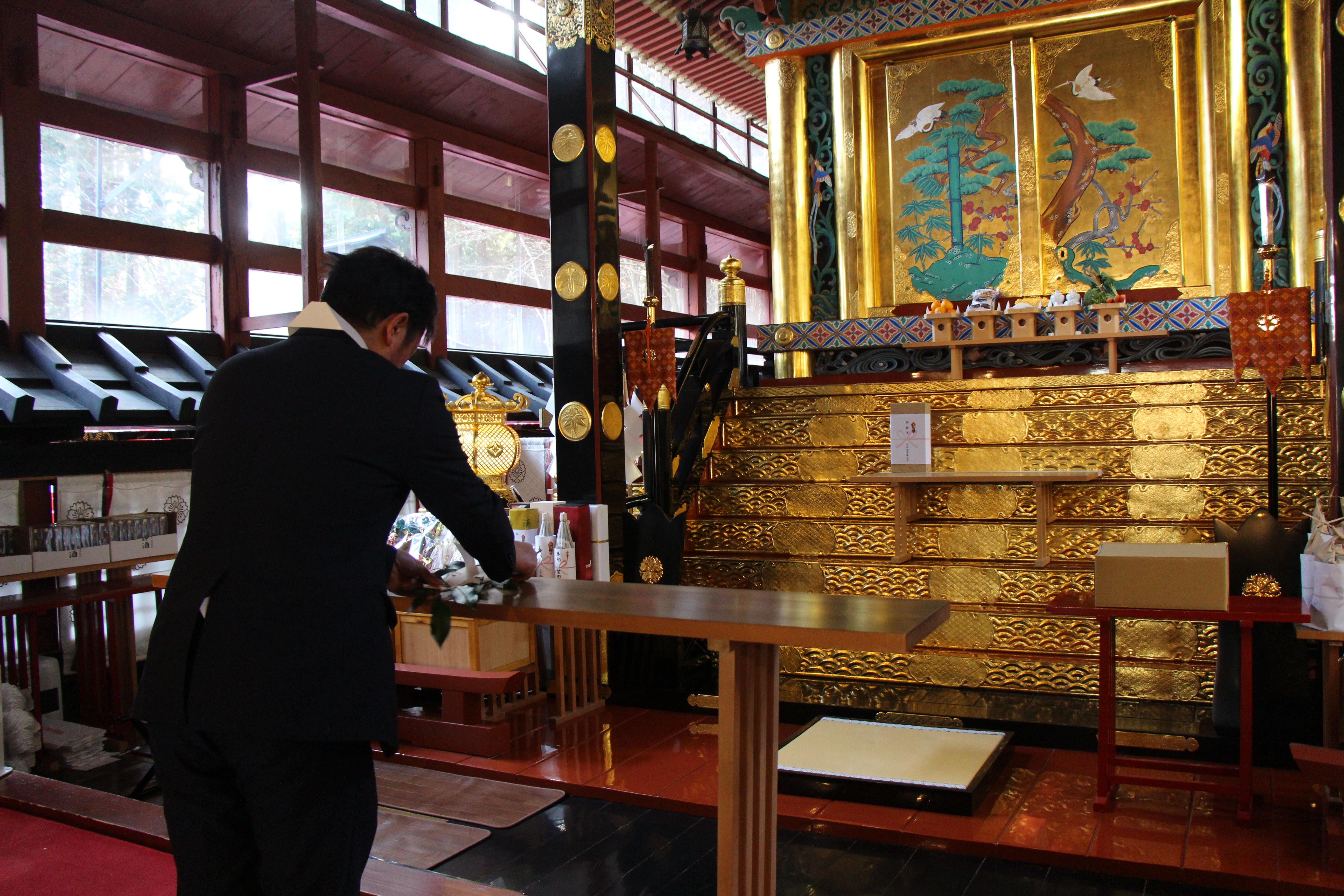代表者が玉串を捧げ、皆様の願いが叶いますように(-人-〃)と礼拝。