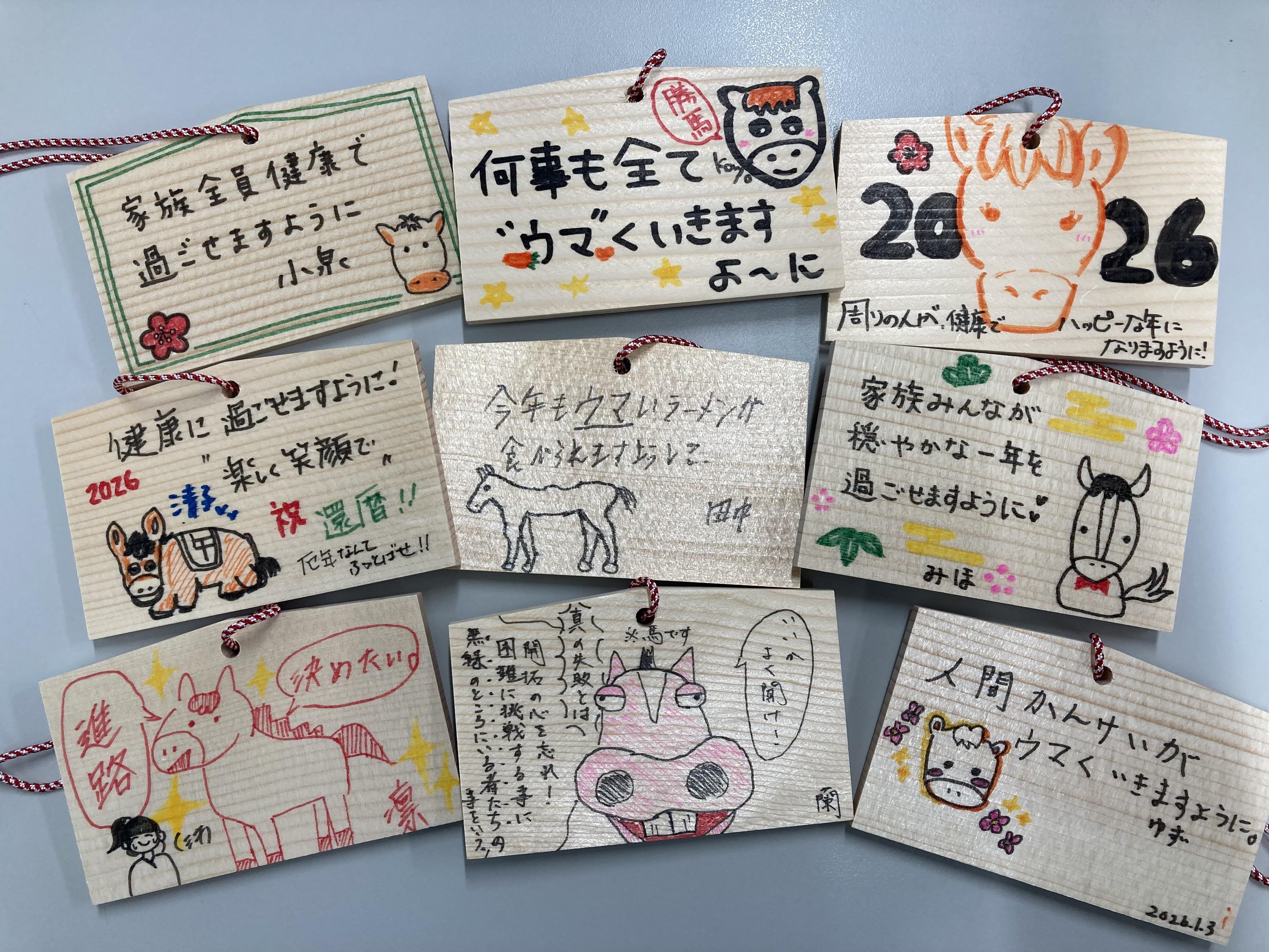おかげ様で今年も多くのお客様が三ヶ日の滞在中に絵馬へお願い事を書いてくれまして、その総数は300枚以上となりました!