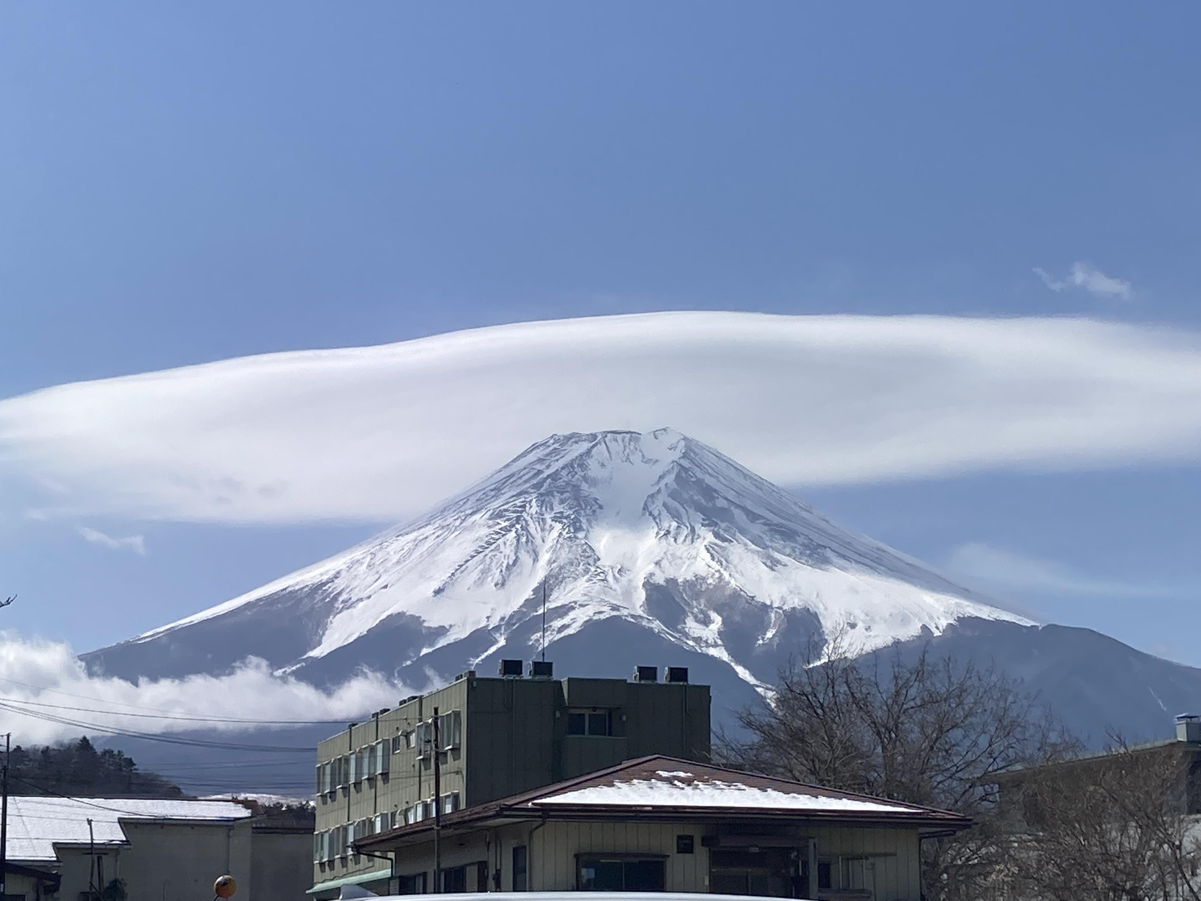 という事で先日出勤中にたまたま見かけた綺麗な傘雲のかかった青空富士山をお裾分け♪