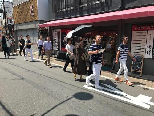 ガイドさんに先導して頂いて、御一行は伏見稲荷神社までの参道に行くまでに沢山の出店や露店が出ておりました。