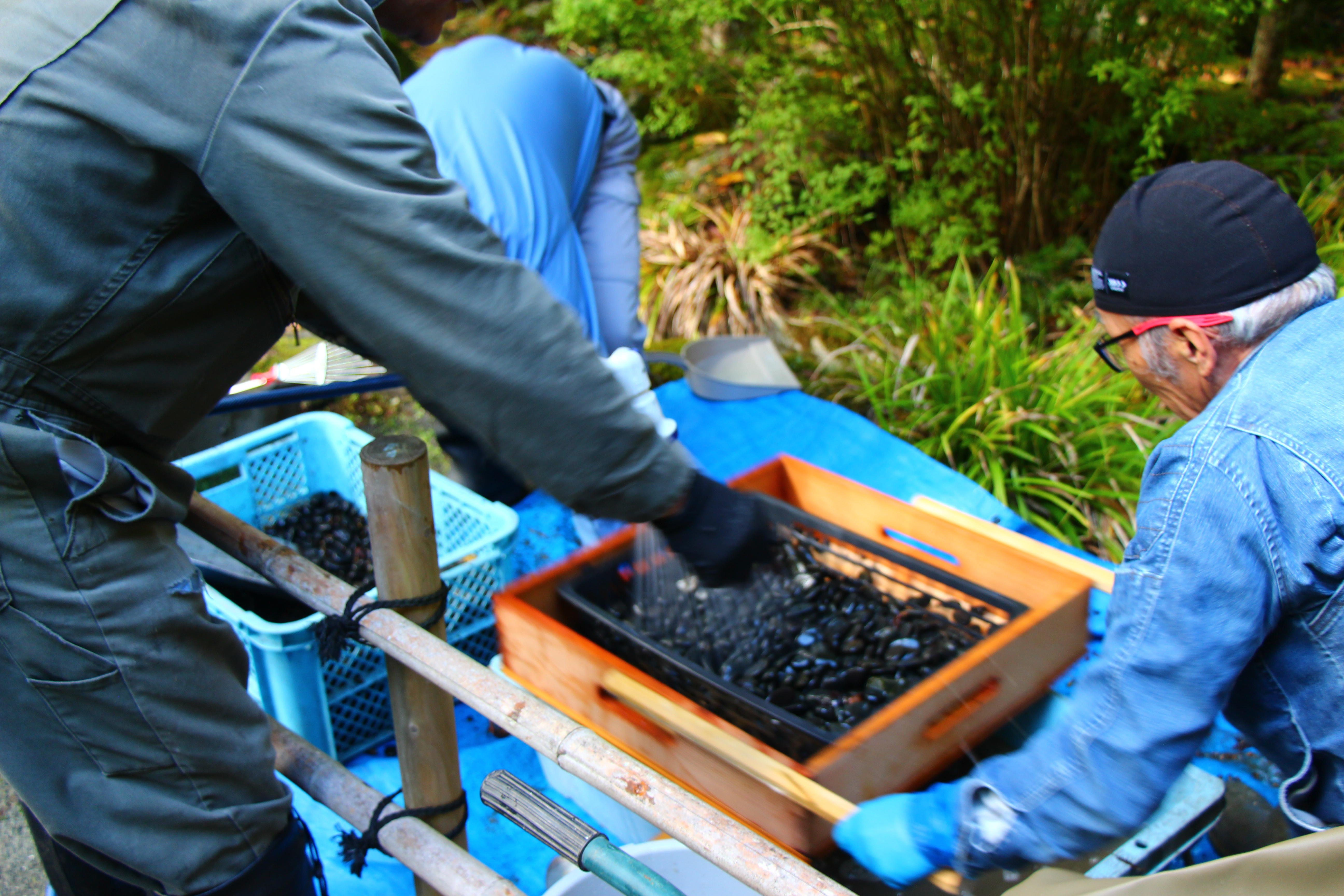 水路にある石ころを集めて洗い流すわけですが、これがなかなかの大仕事でΣ(゚ω゚ノ)ノ