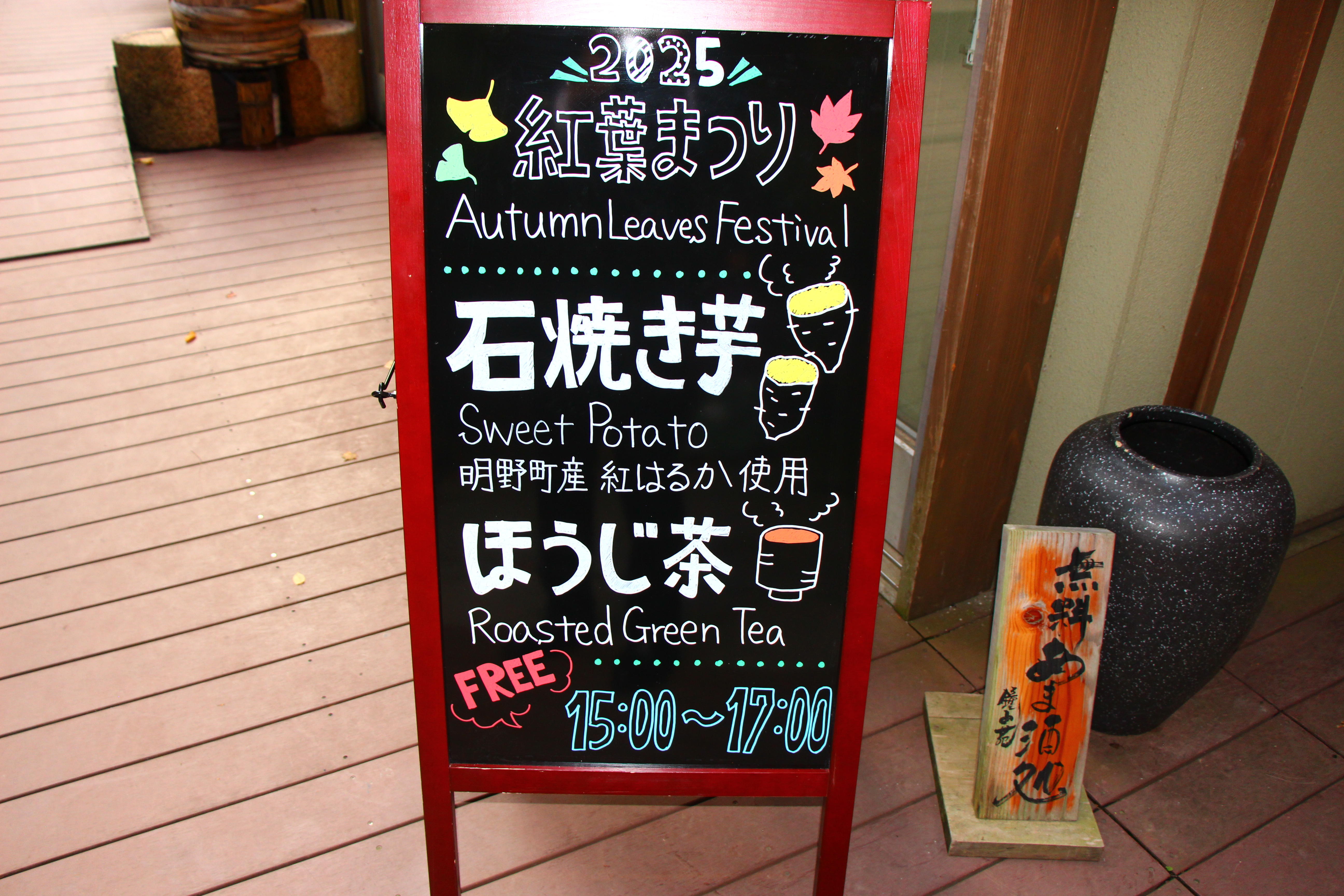 そんな紅葉まつりでは昨日もお伝えした通りこもれび庵にて焼き芋とほうじ茶のサービスと生演奏のコンサートをお楽しみいただけます