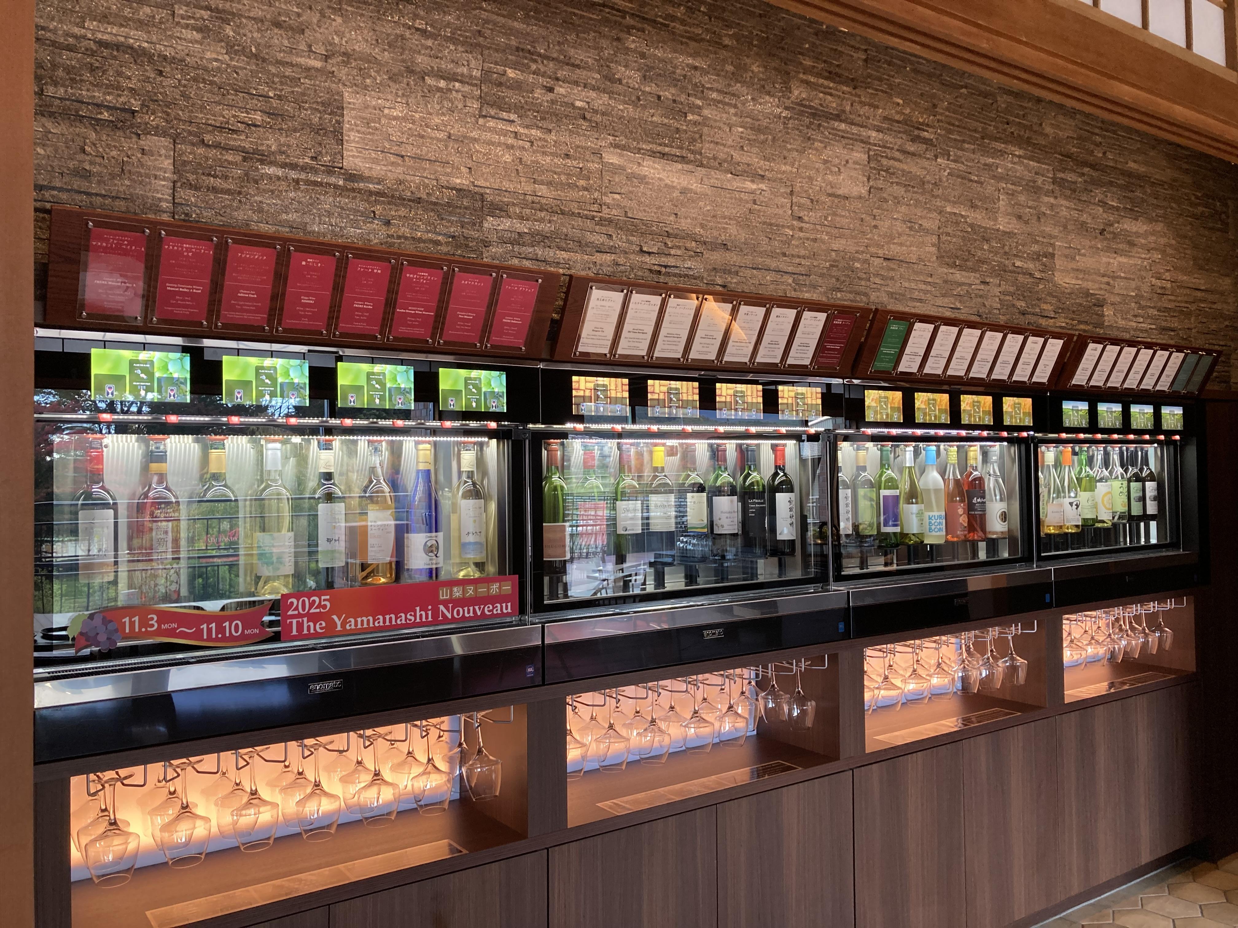 山梨ワインラウンジ内では、常時32種類のワインをお楽しみいただいておりますが、