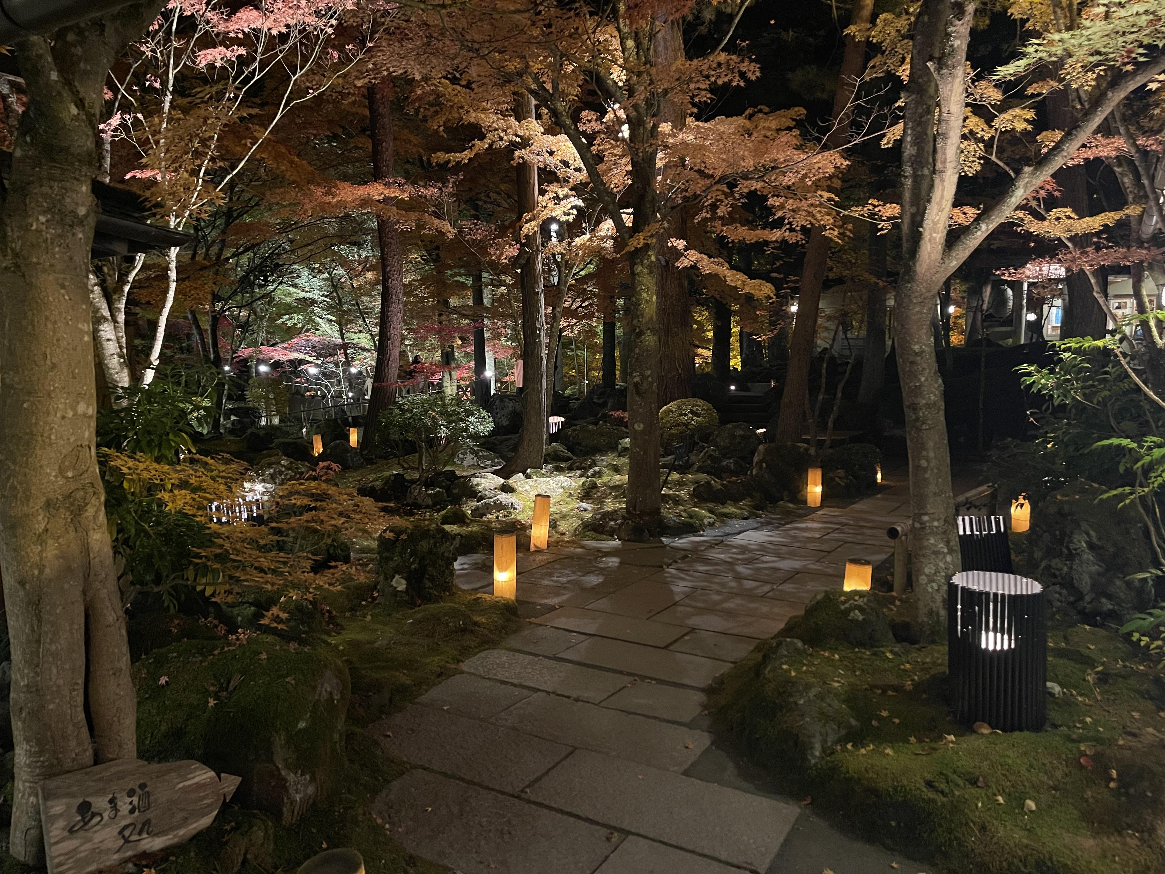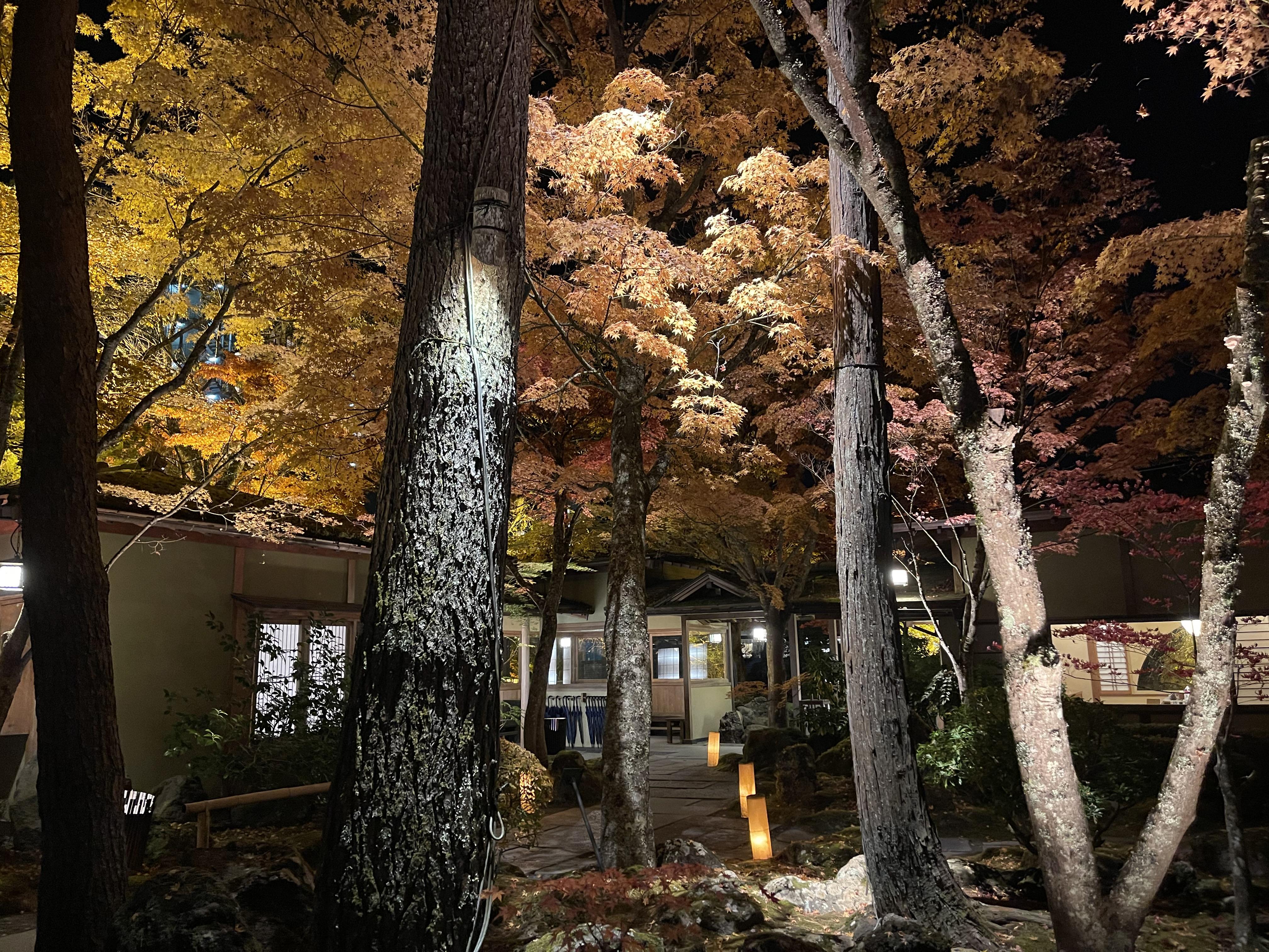 夜の庭園の紅葉の様子をご紹介させて頂きます@@