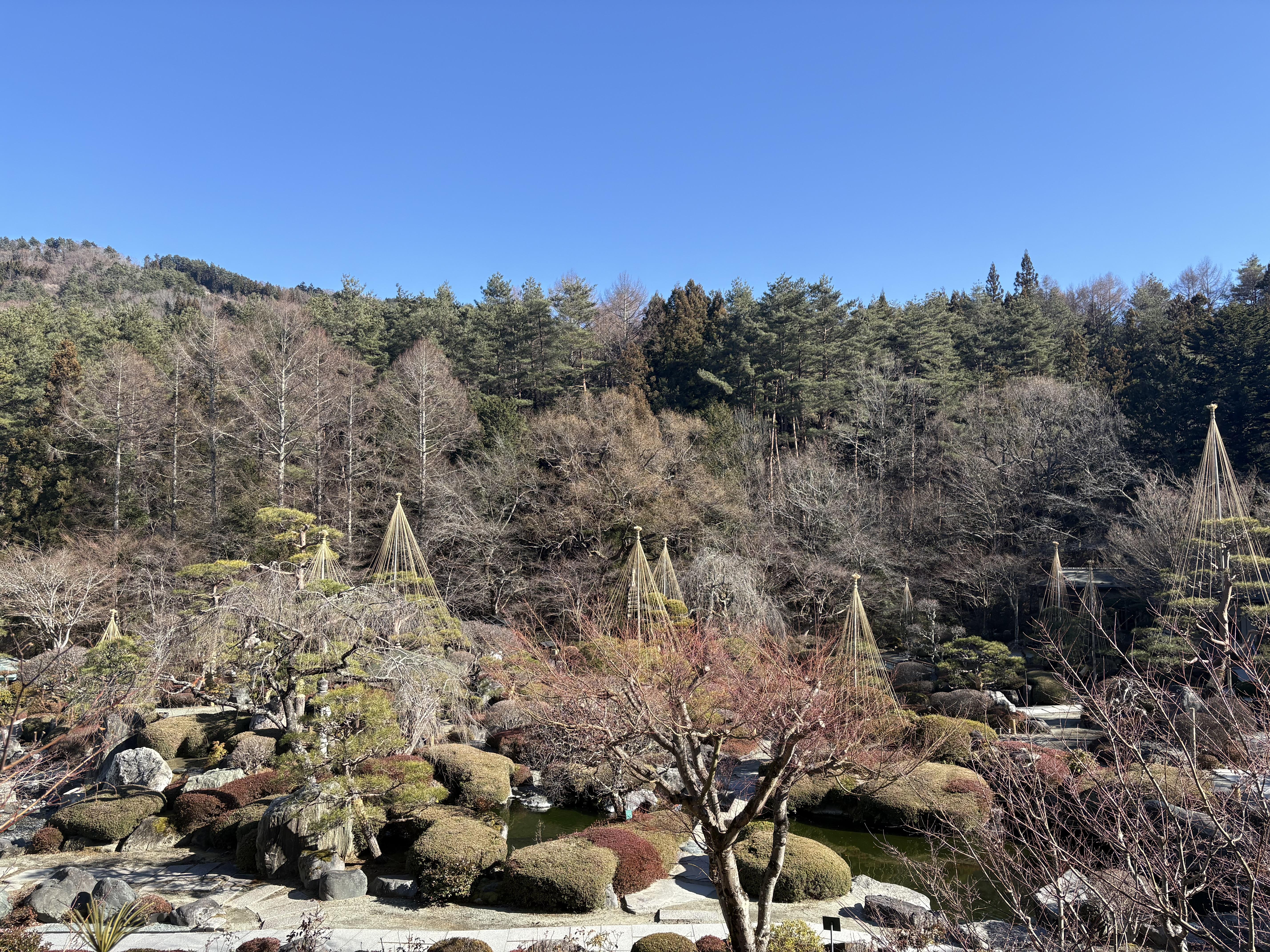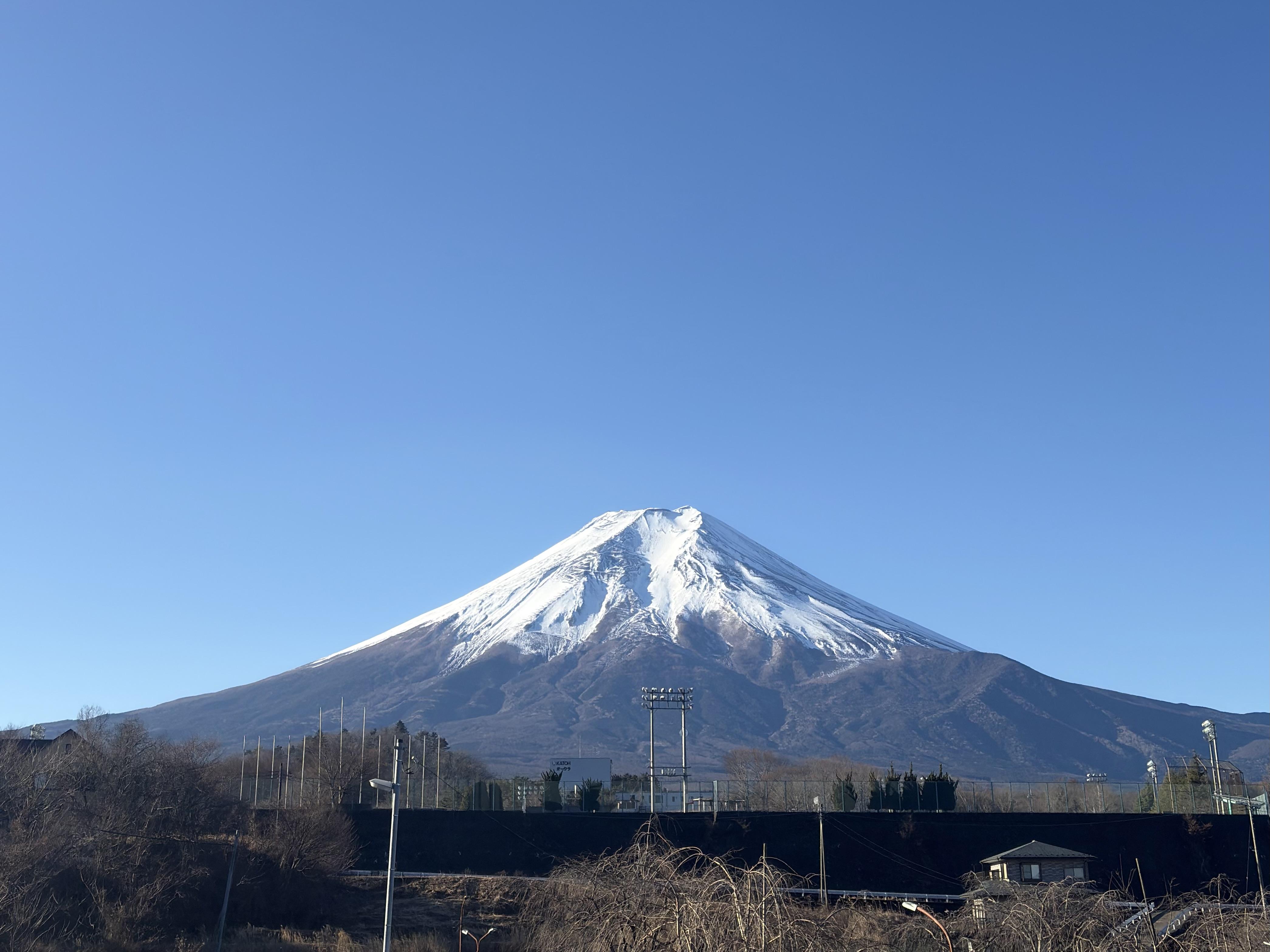 富士山が、静かなお庭を優しく見守ってくれているようです:.。. .。.:*・。
