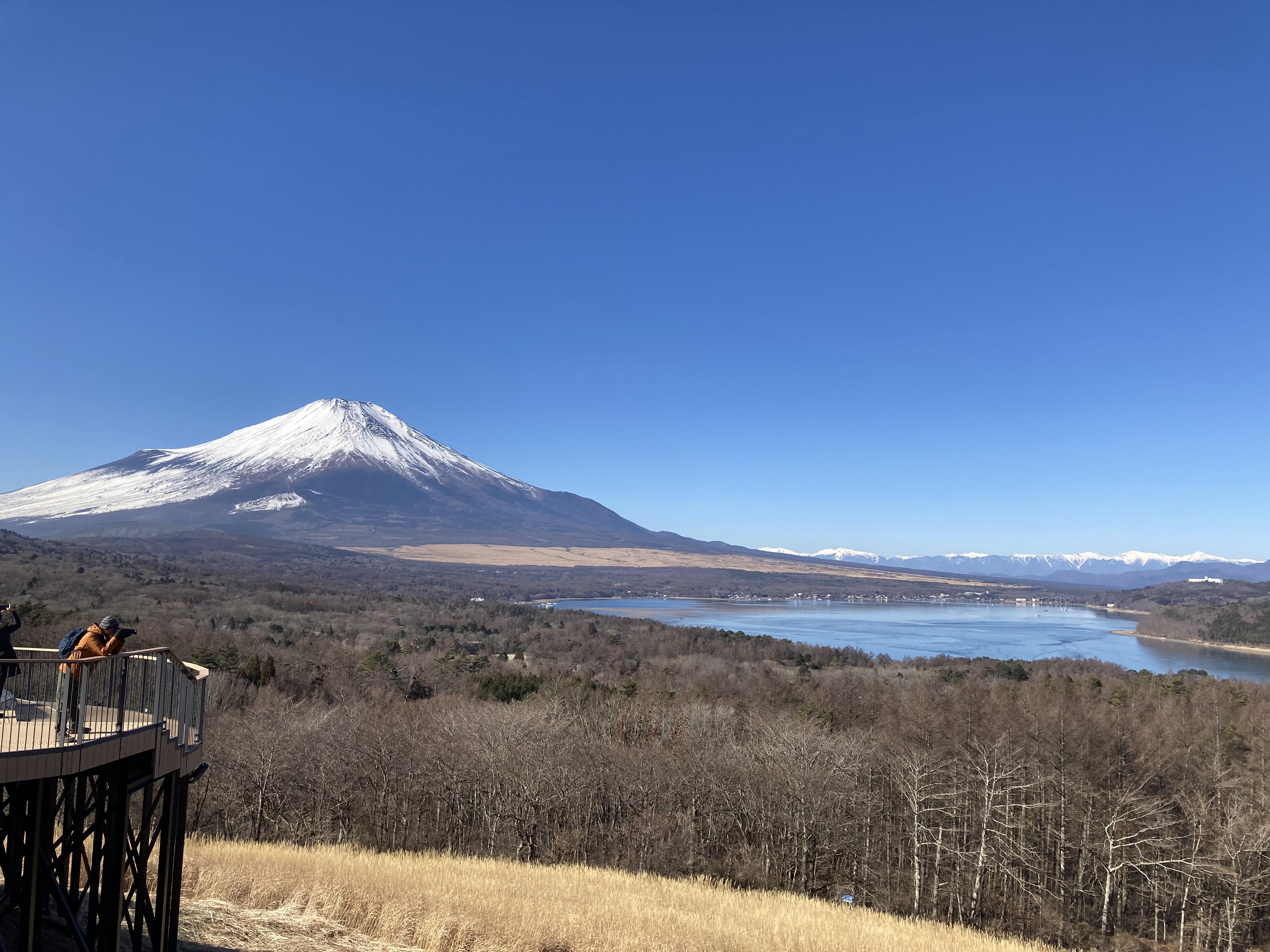 この日も冬晴れで☀、展望台からは富士山と山中湖が一望できました!!