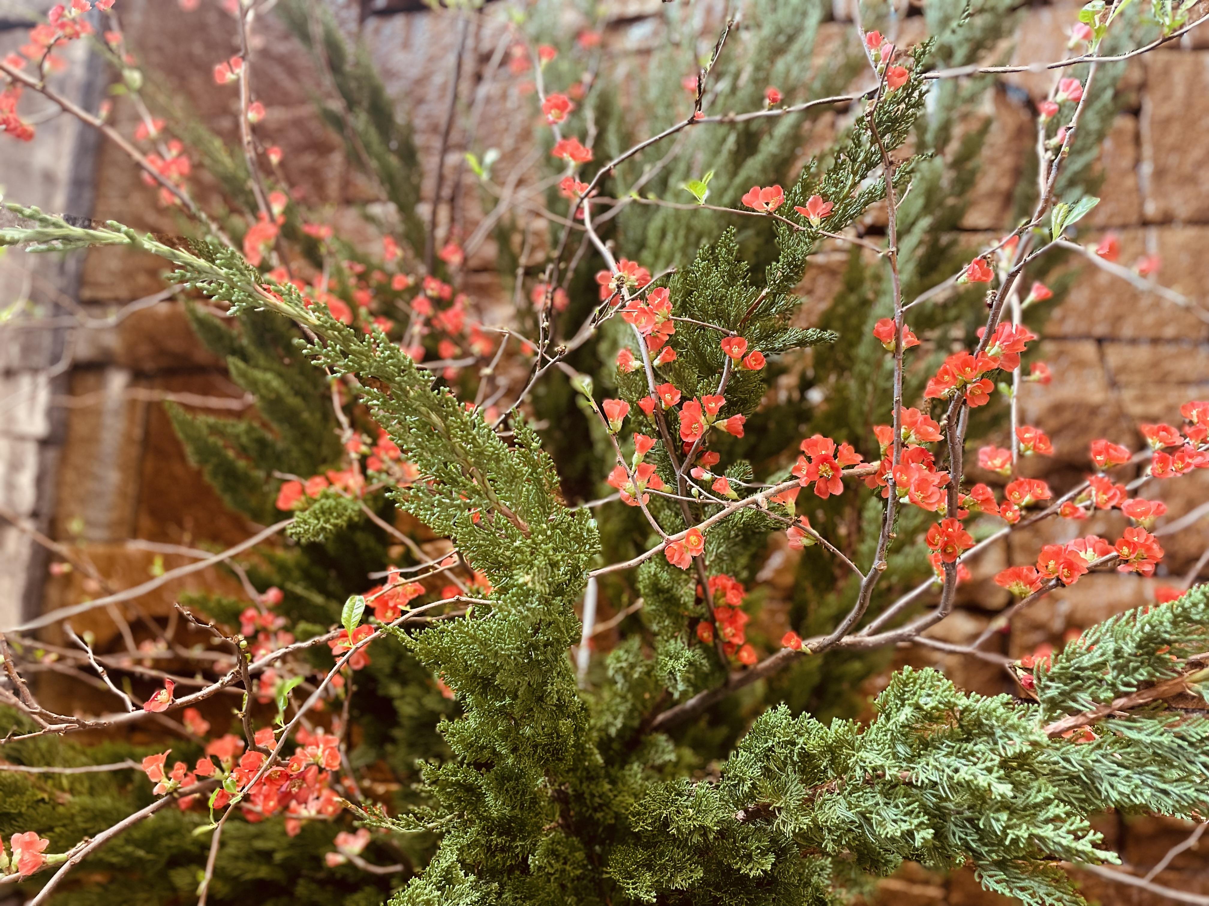 フロントから下へ向かう階段の正面、クラブラウンジ入り口のすぐ側には"ボケ"のお花も展示されております♪