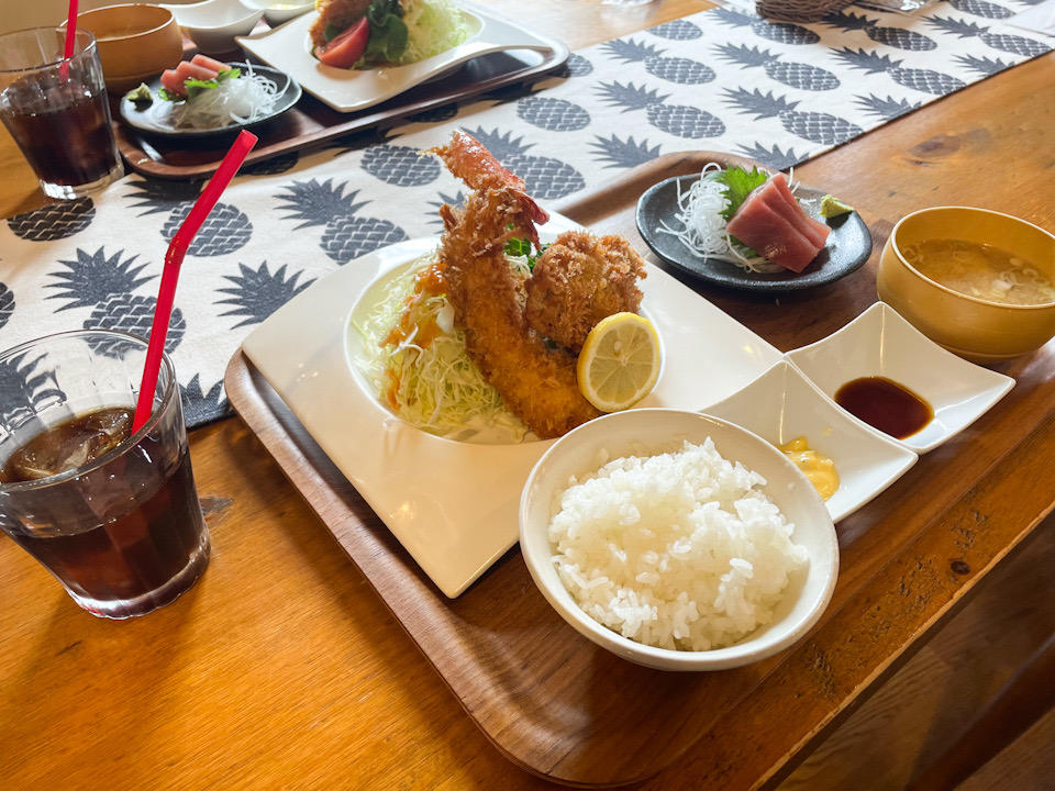 写真はエビフライとヒレカツの豪華なランチです!ψ(´ڡ`♡)