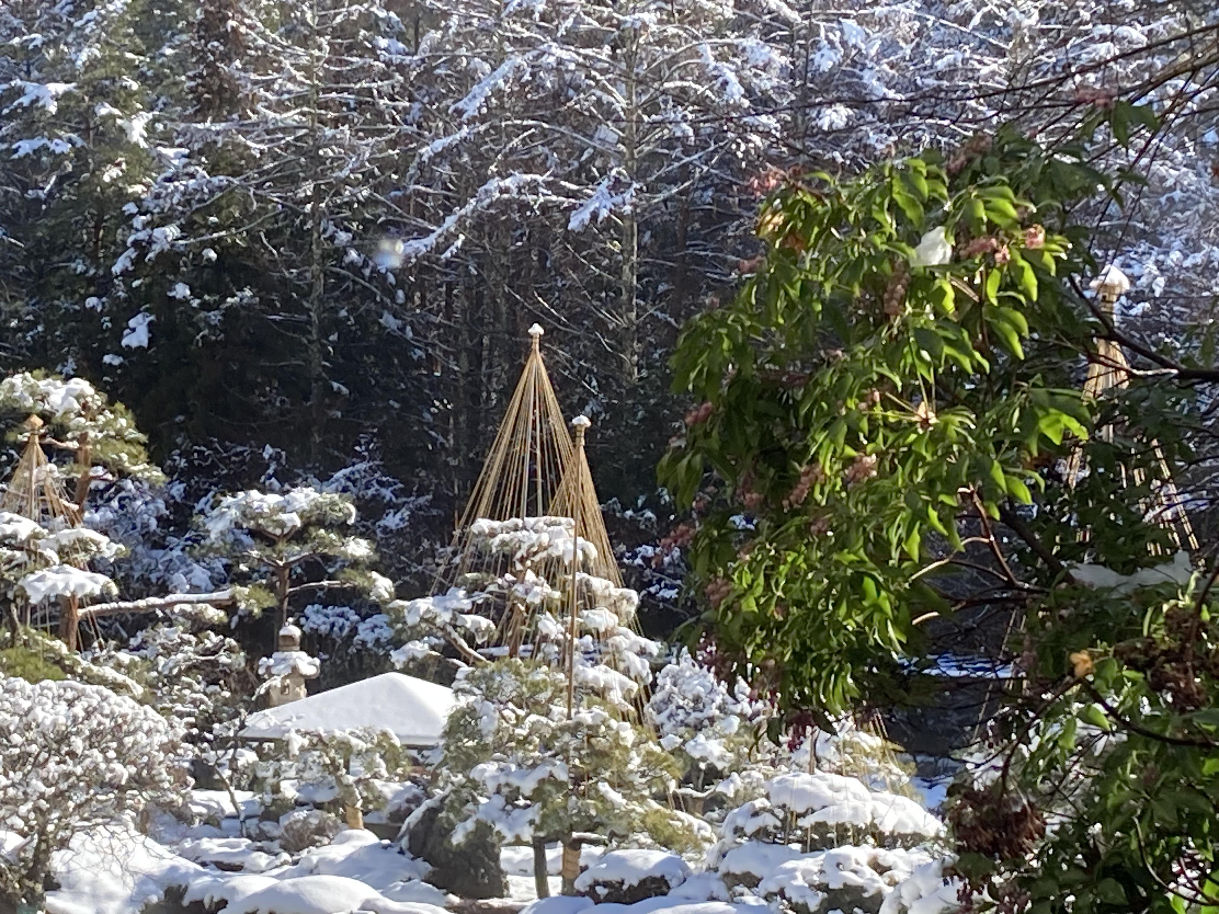 当館の庭園も、雪化粧の景色。