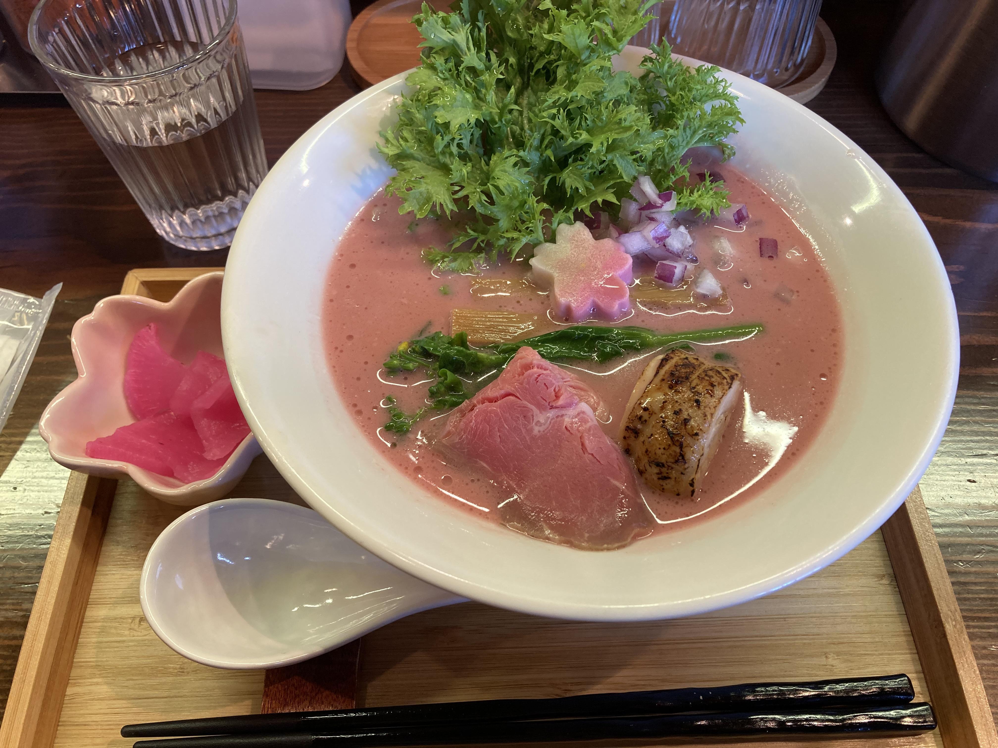 昨日、一昨日とお伝えした通り、当館庭園の桜も遂に徐々に開花し始めようやく春の庭園へ姿を変えつつありますこんな時期にピッタリの季節限定ラーメンを食べてきましたのでそのご紹介♪