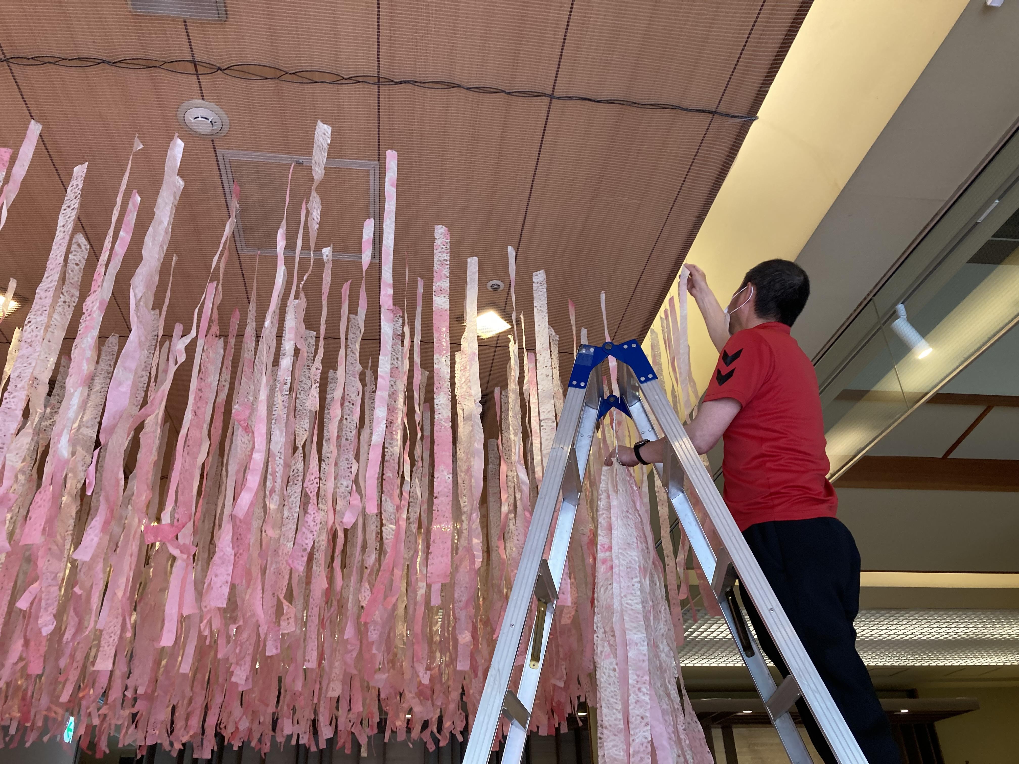 準備が着々と進んでおり、本日は、季節を見渡すラウンジ通路の天井の飾りつけを米山が頑張ってくれました٩( 'ω' )و