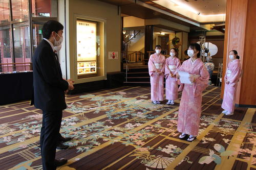 先ずはロビーで接客係としてのご挨拶、笑顔でお迎え